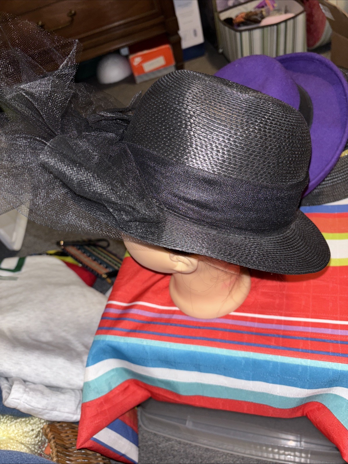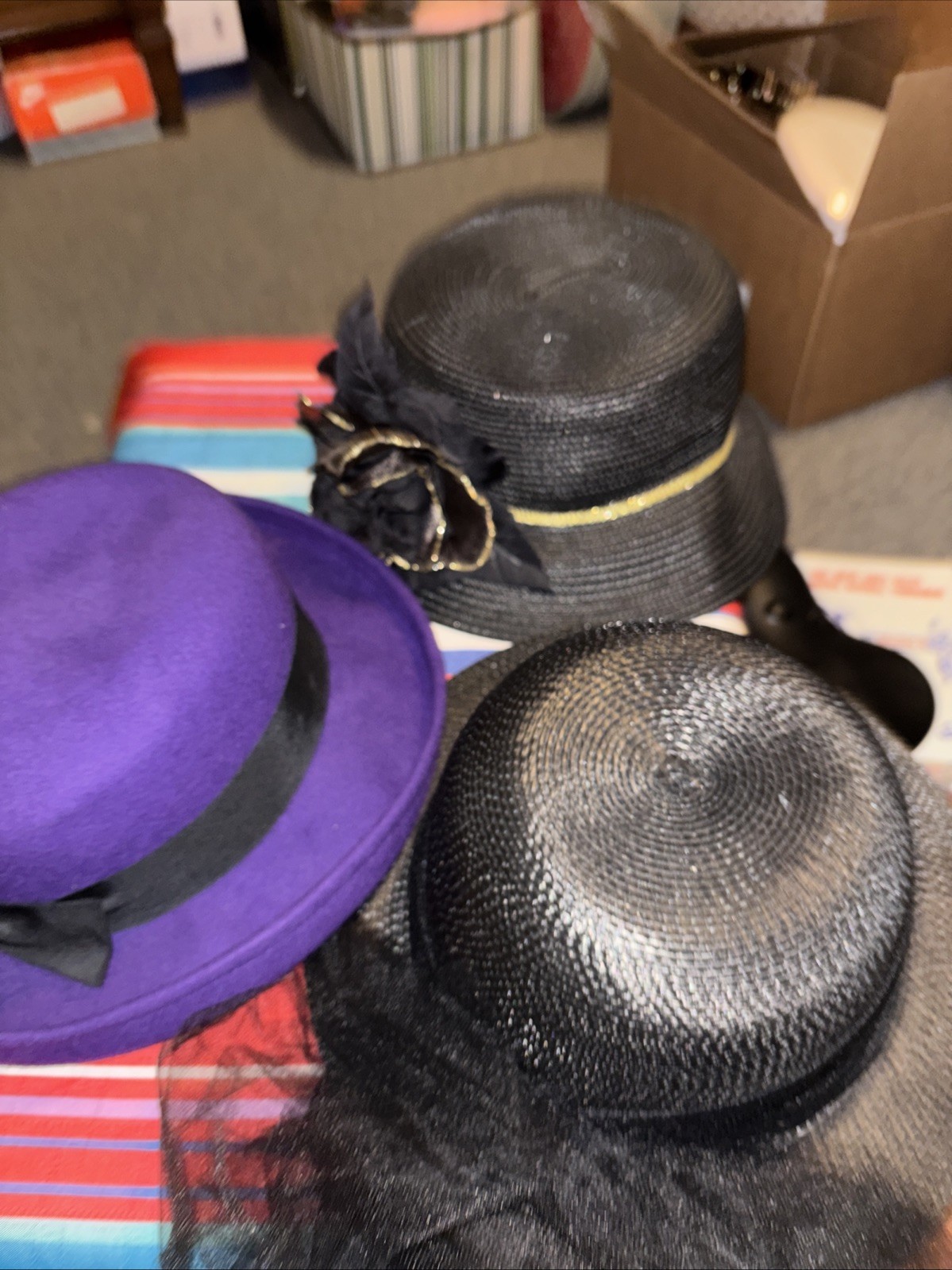 как выглядит Lot of 3Vintage Ladies Hats 2 Black. 1Purple Great Condition фото
