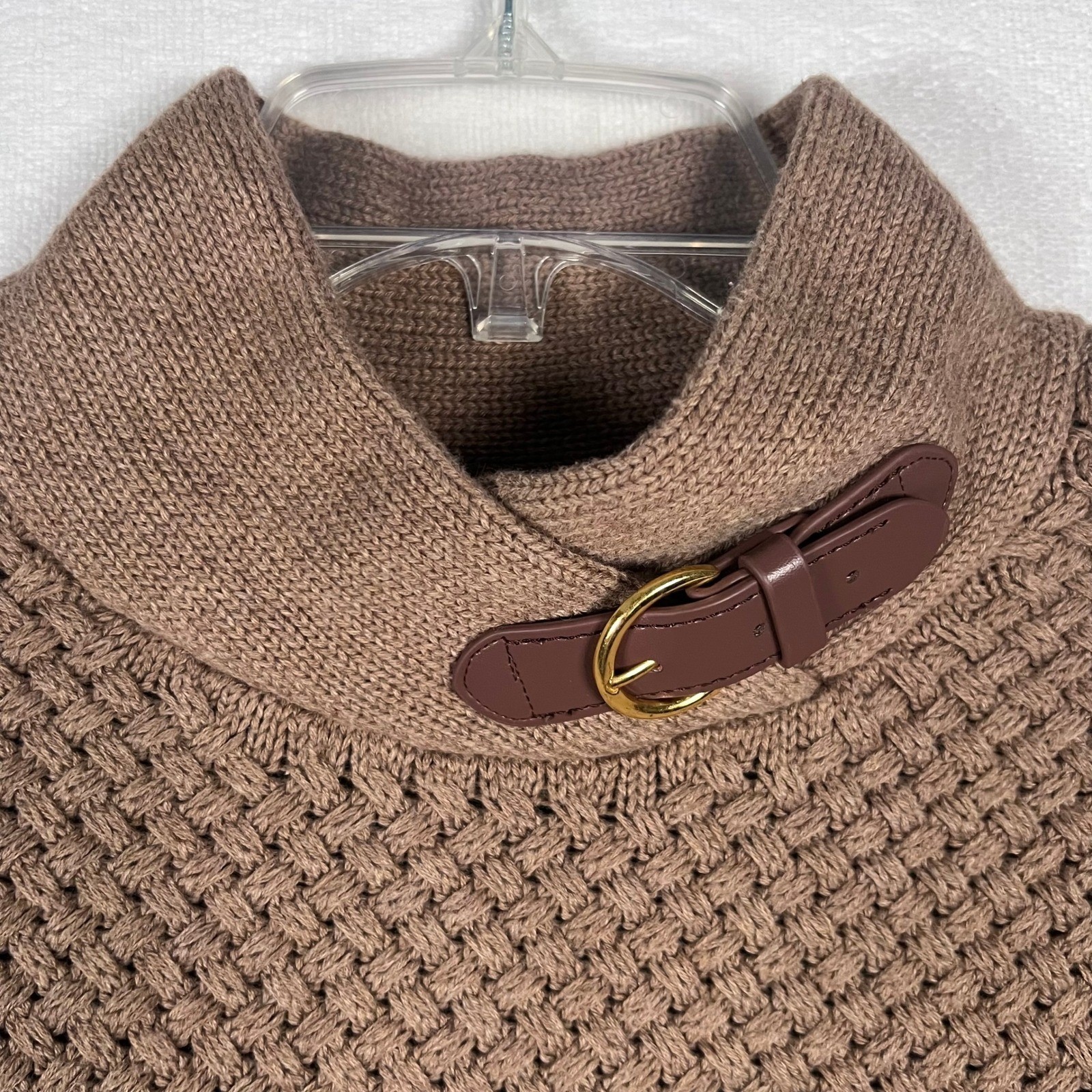 Banana Republic Small Brown Knitted Poncho Cape Sweater Mock Neck Buckle Detail