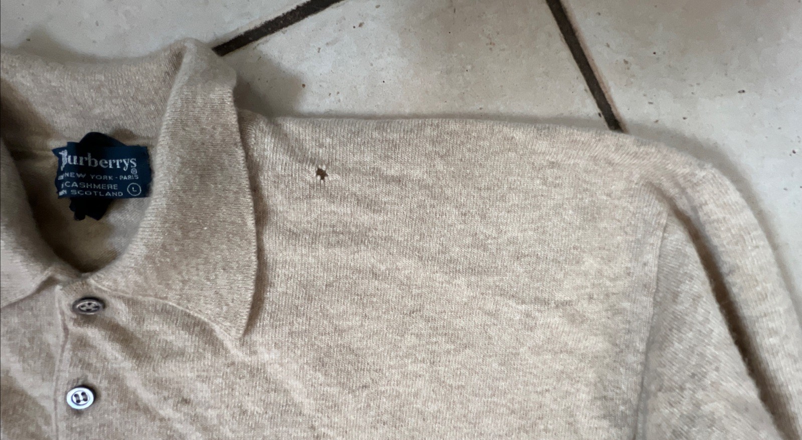 VTG Burberrys Mens Sweater 100 Cashmere Made in Scotland Size L Collared As-is