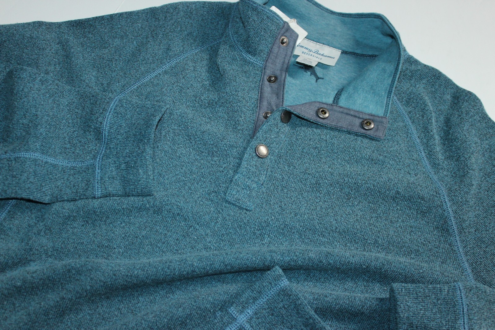как выглядит Tommy Bahama Sweater Pullover Palm Canyon Flip Snap Night Blue New Medium M фото