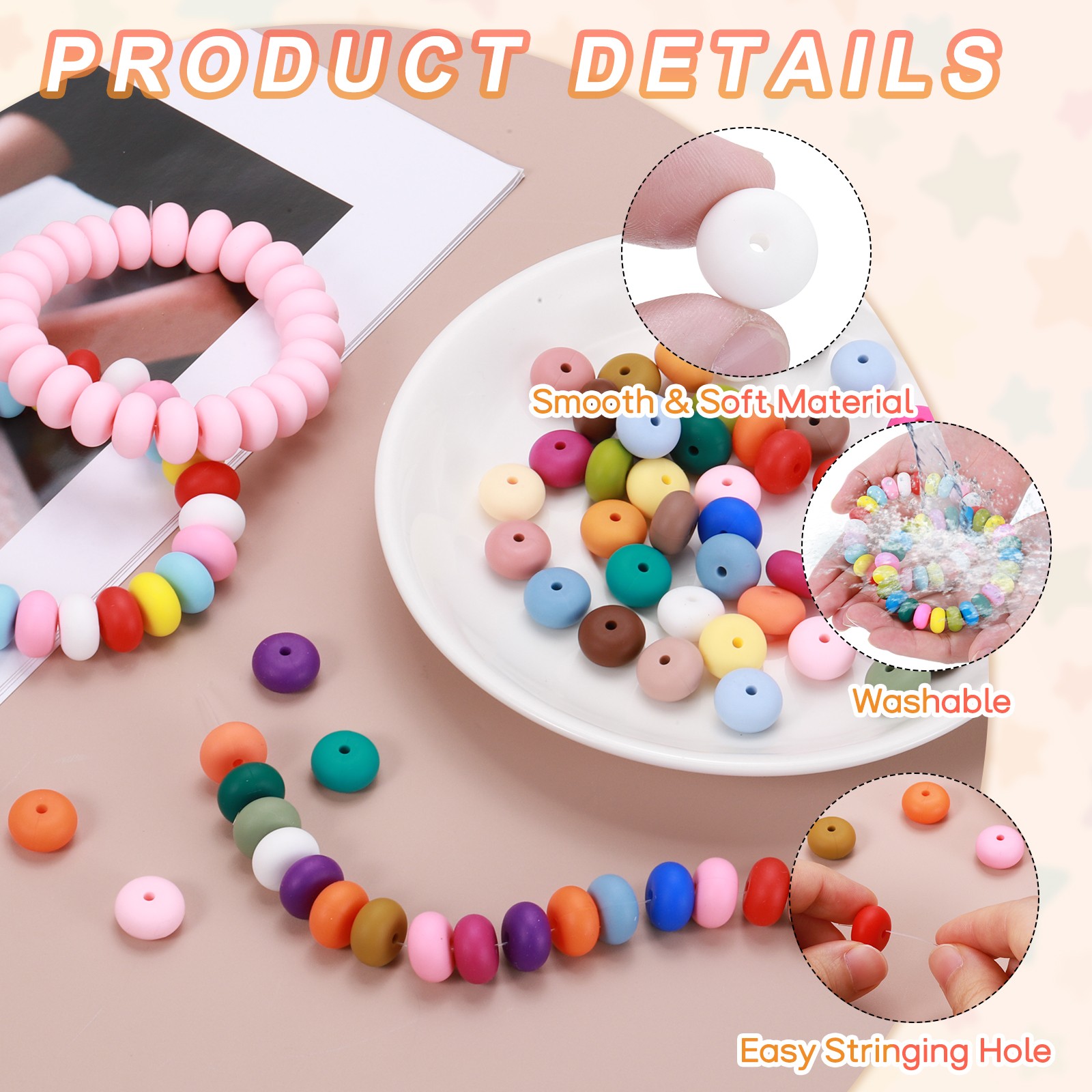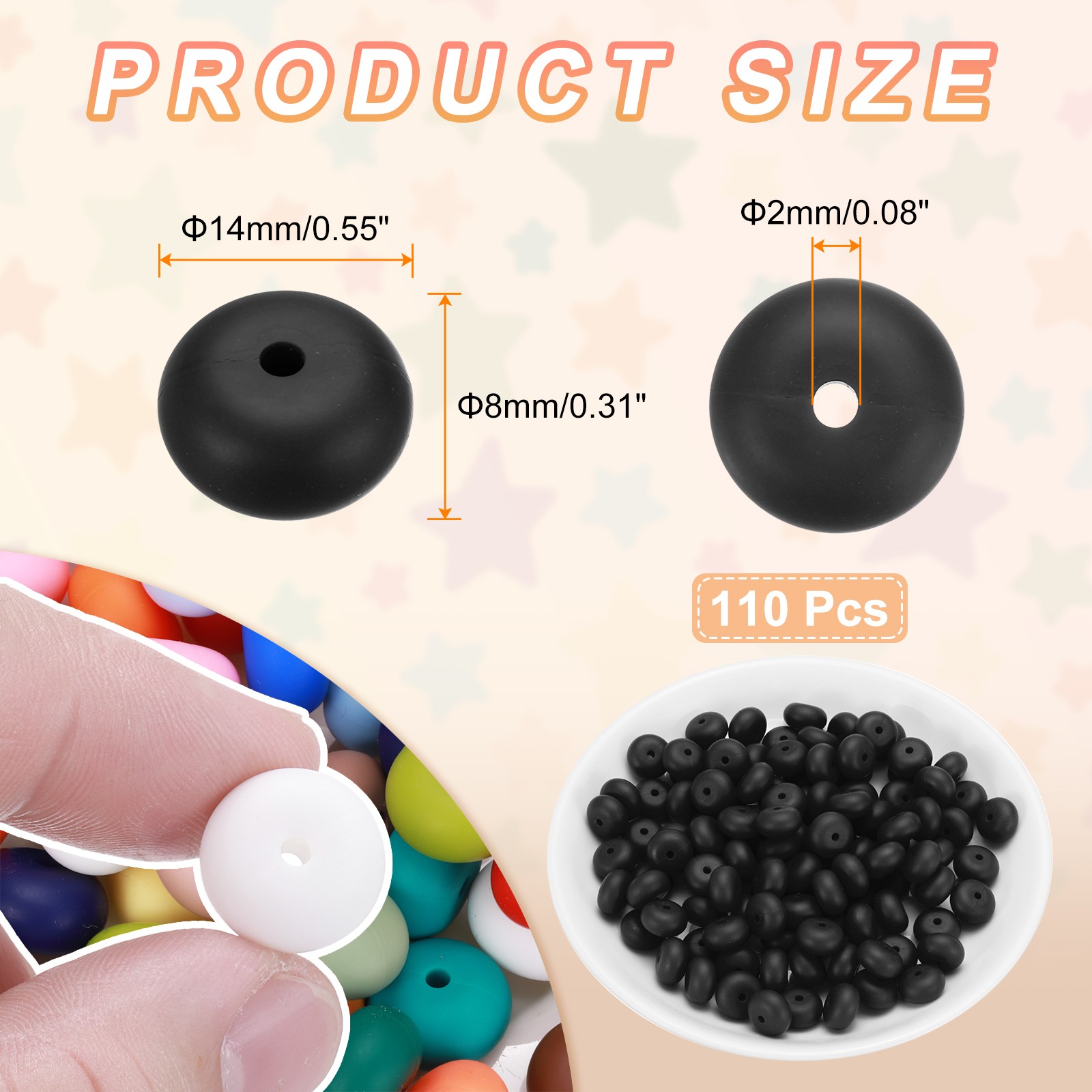 110Pcs Silicone Beads 14mm Lentil Rubber Focal Beads Bulk, Black