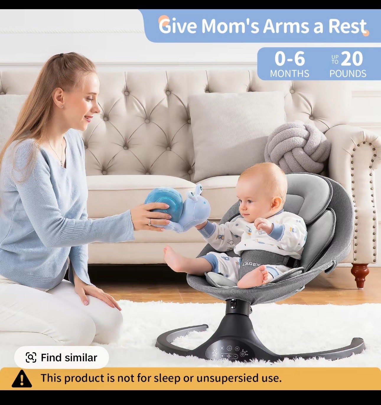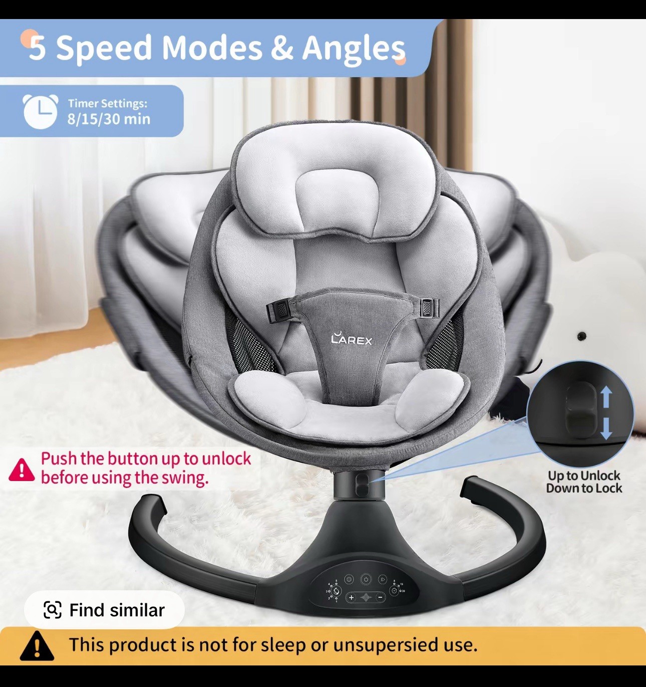 как выглядит Larex Baby Swing for Infants Electric Bouncer for Babies Portable Swing for Baby фото