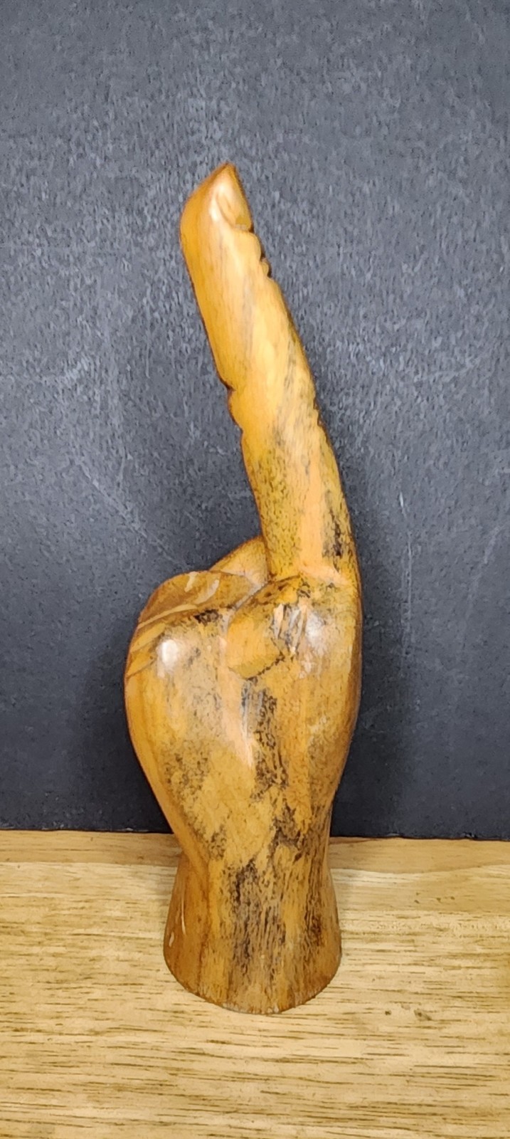 как выглядит Vintage Carved Wood "The Bird" Middle Finger Flippin Off Gesture Hand Sculpture фото