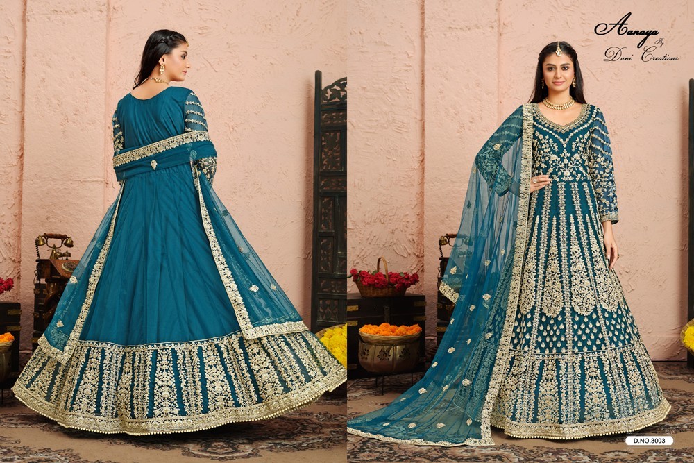 Blue Net Zari Sequence Embroidered Anarkali Gown with Heavy Dupatta Luxury F