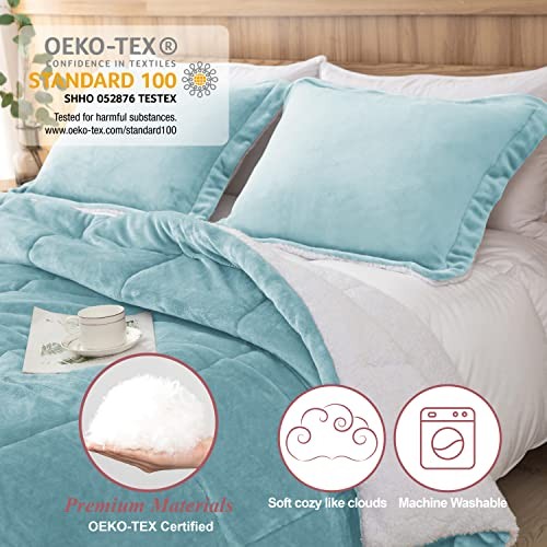 Sherpa Comforter Set Size, All Season Soft Warm Fleece Fall Twin XL Smoke Blue