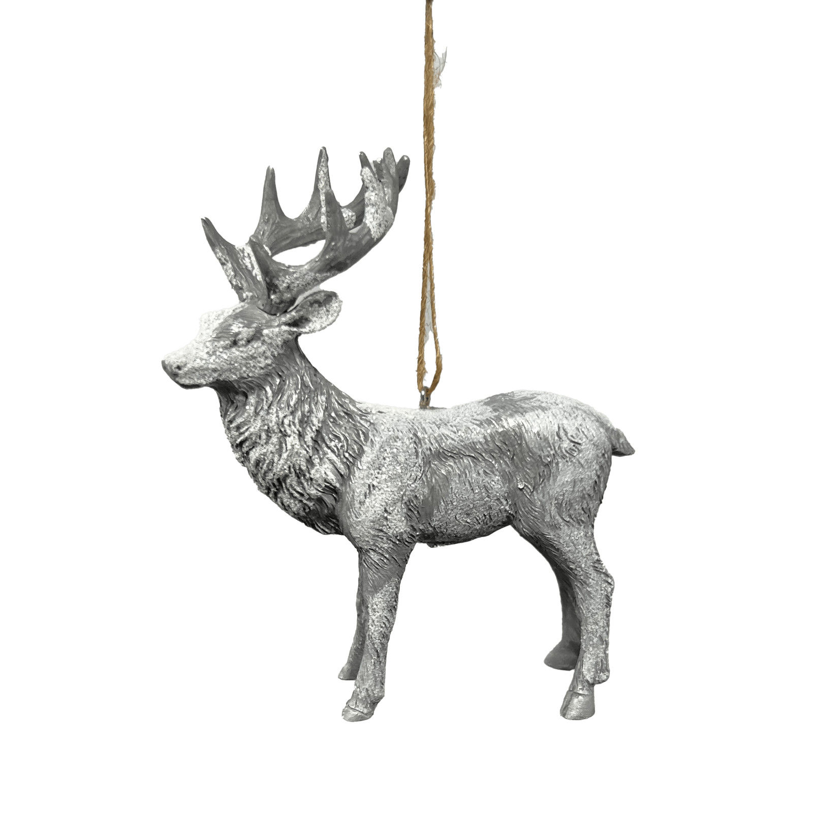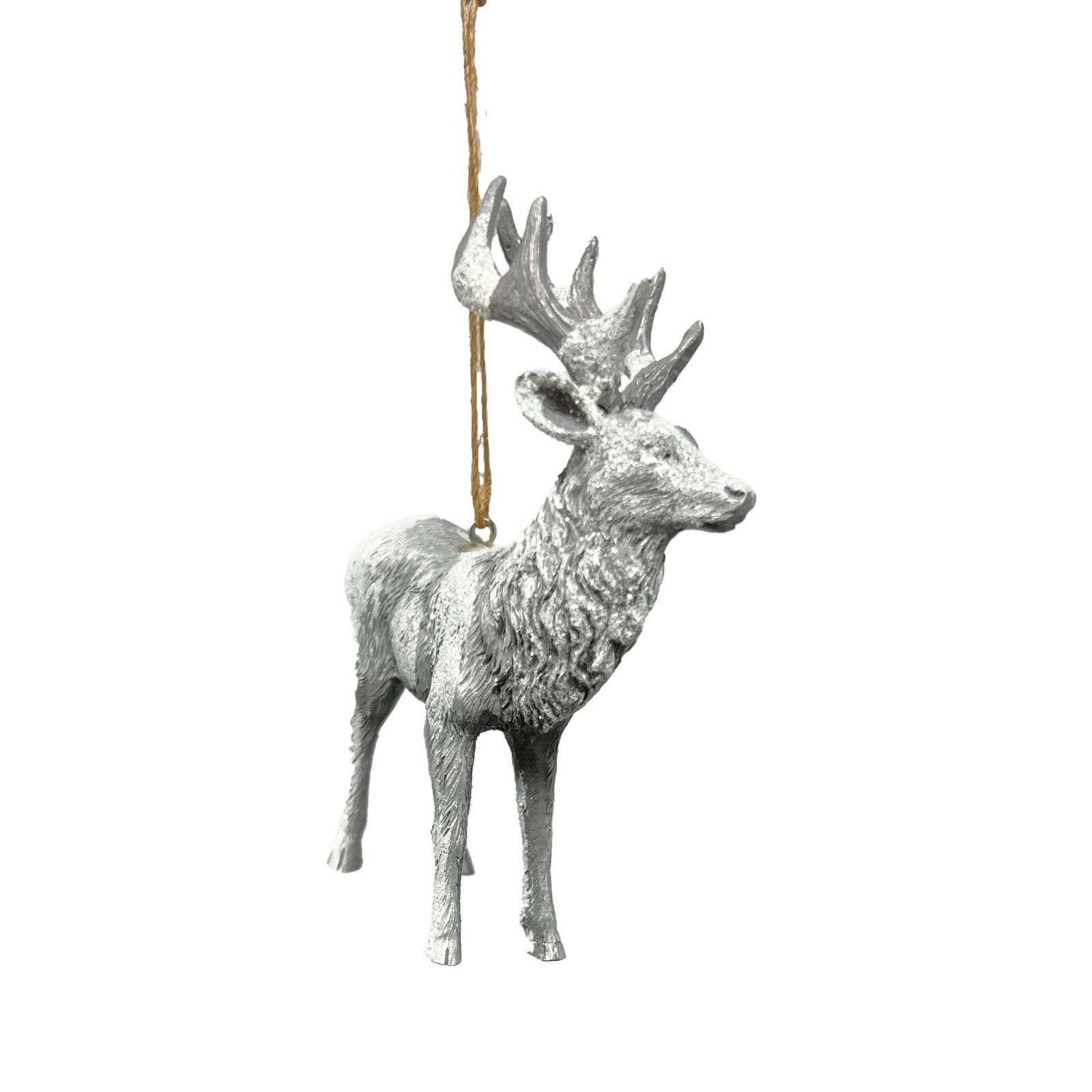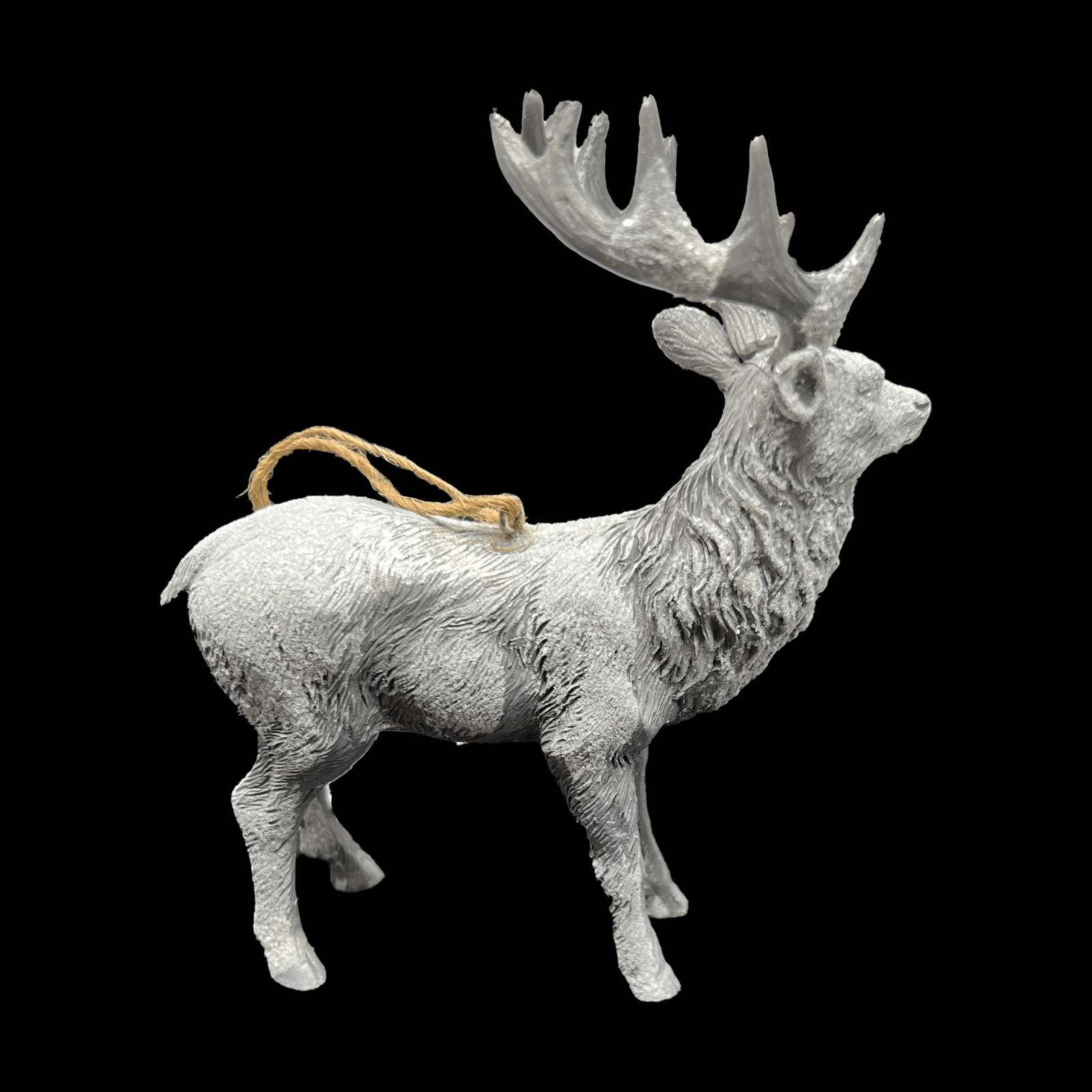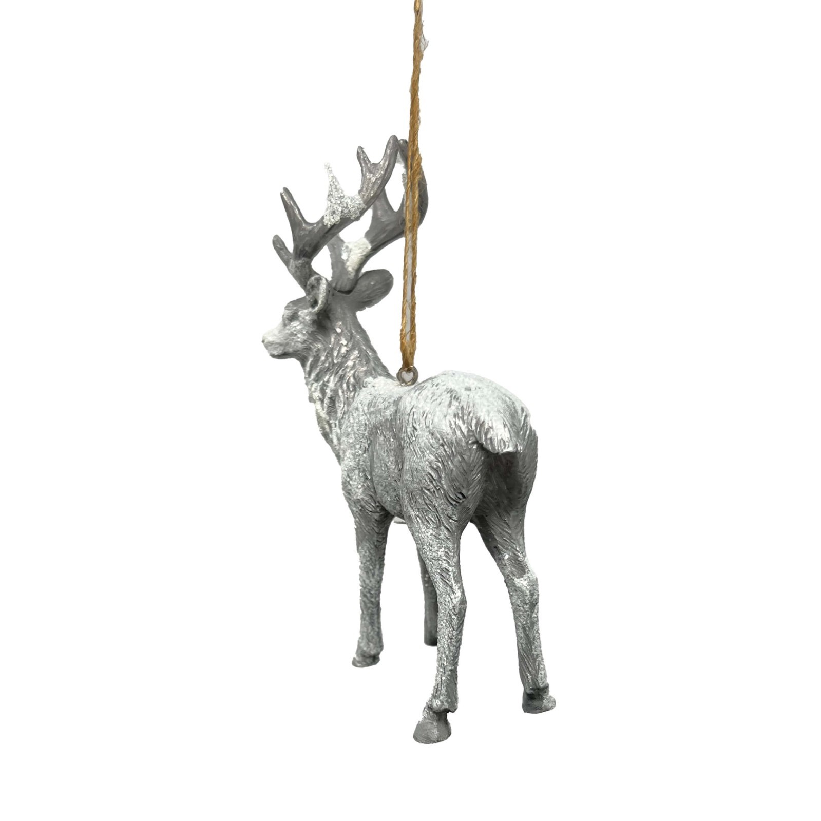 Large Elegant Silver w/ Glitter Reindeer Christmas Ornament Holiday Rustic Decor