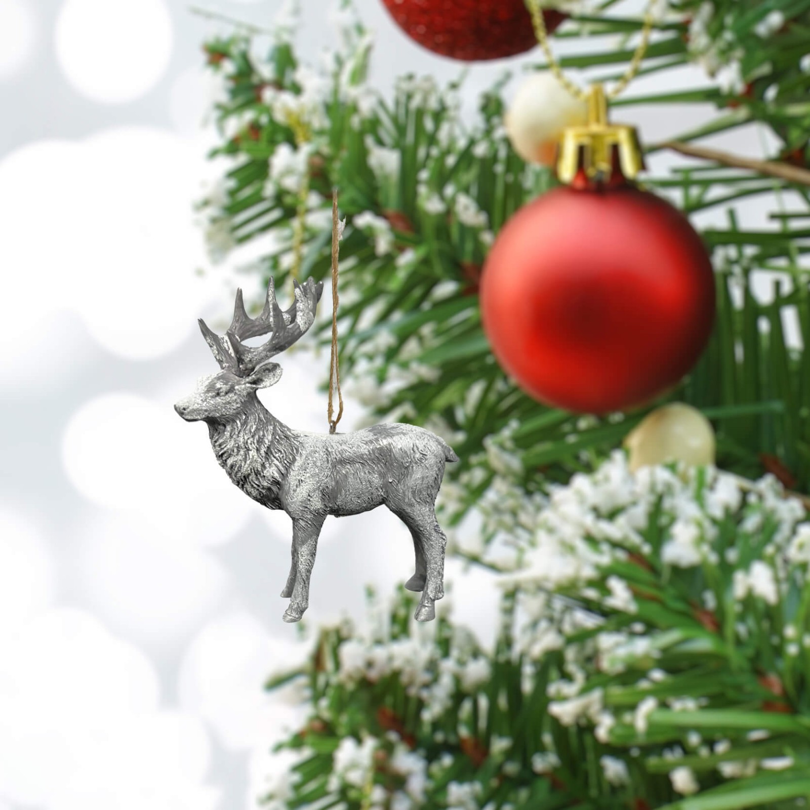 как выглядит Large Elegant Silver w/ Glitter Reindeer Christmas Ornament Holiday Rustic Decor фото