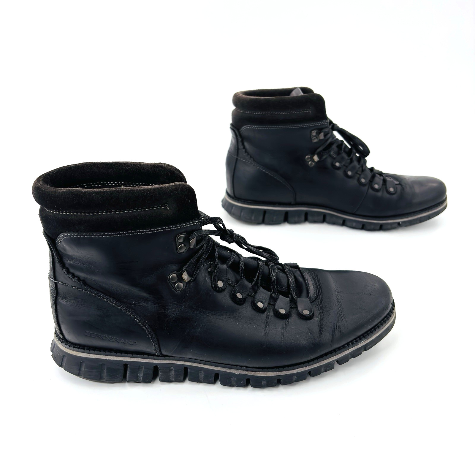 Mens 10 M Cole Haan Zero Grand Black Leather Lace Up Hiking Ankle Boots C30403