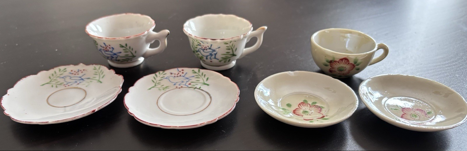 Vintage 7 Piece Pink Floral/Birds Miniature Child's Play Tea Set Made in Japan