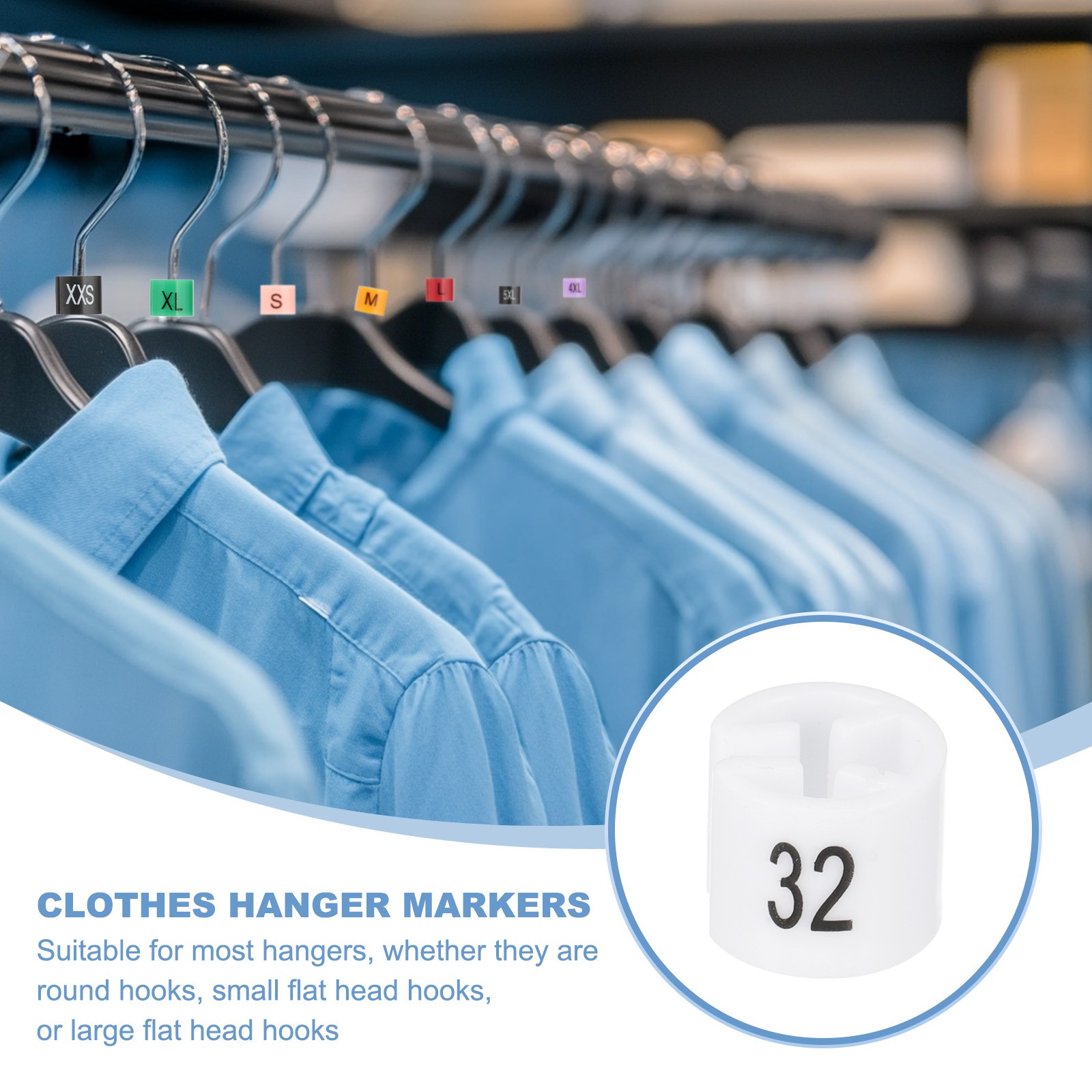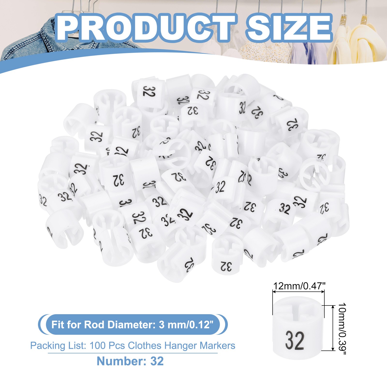 100 Pcs Clothes Hanger Markers, Number 32 Tag for Clothing Hangers, White