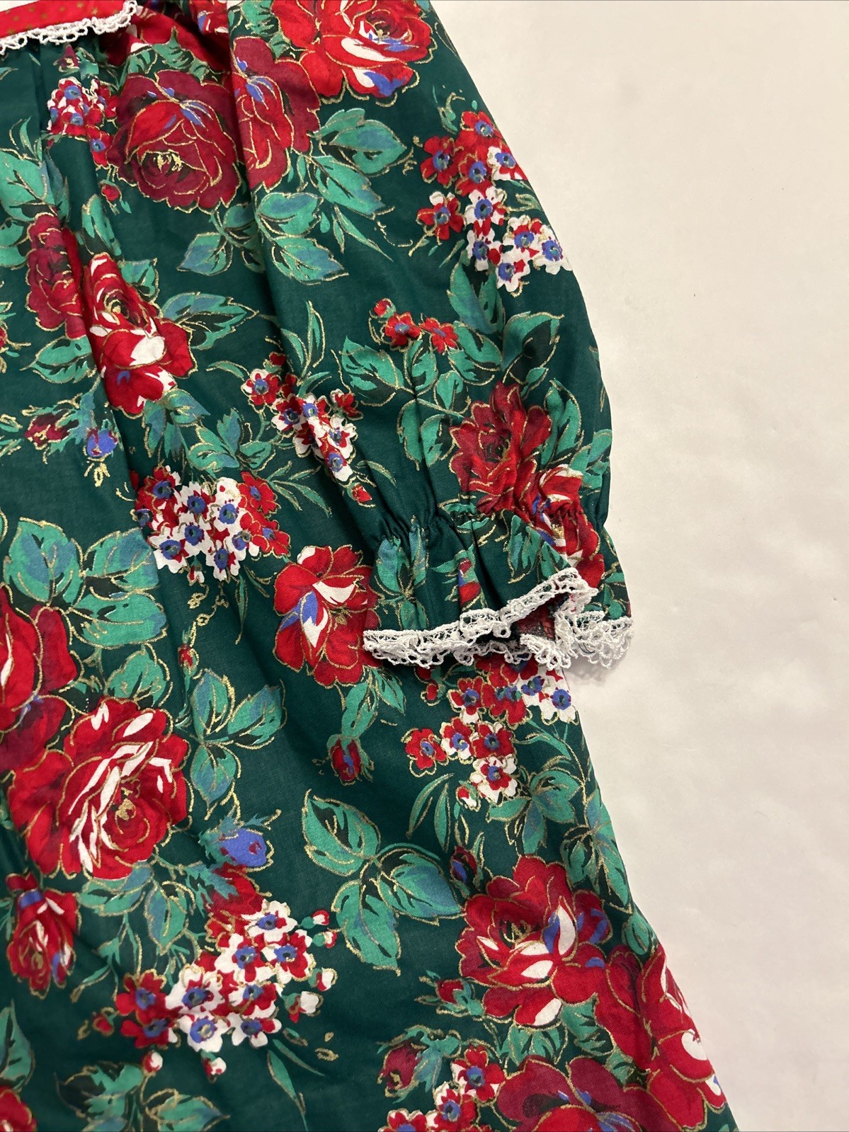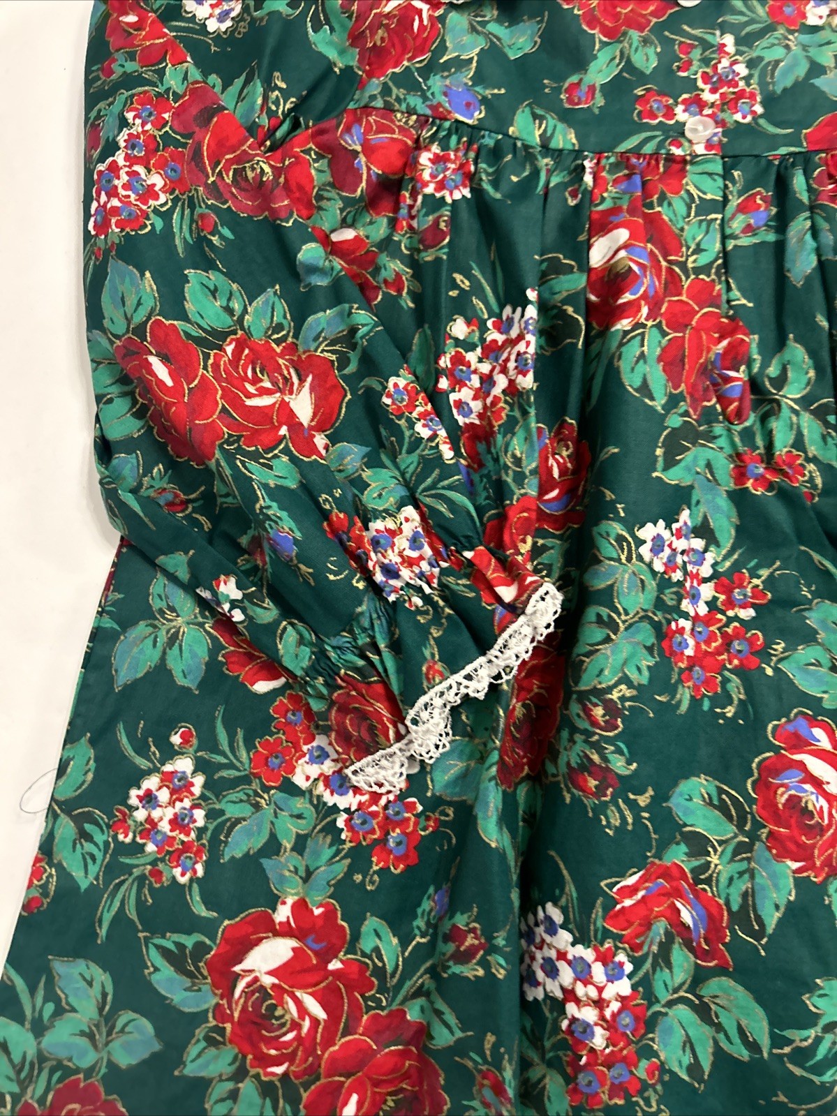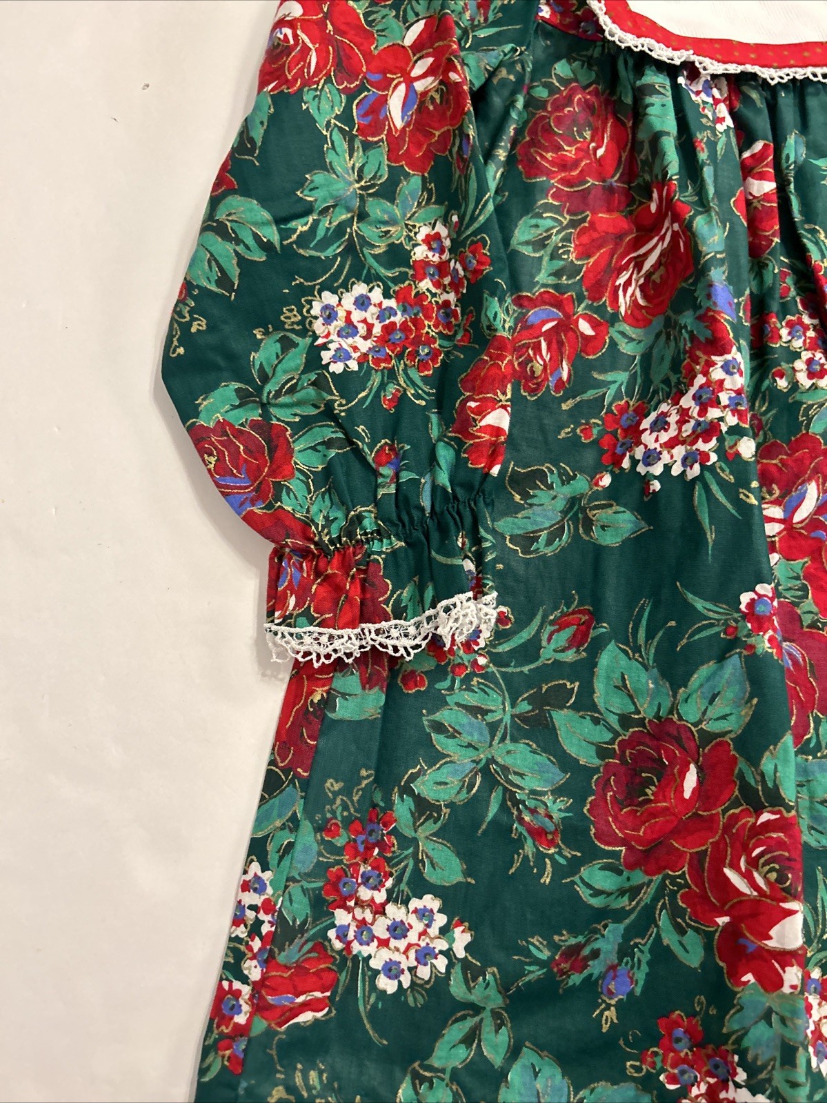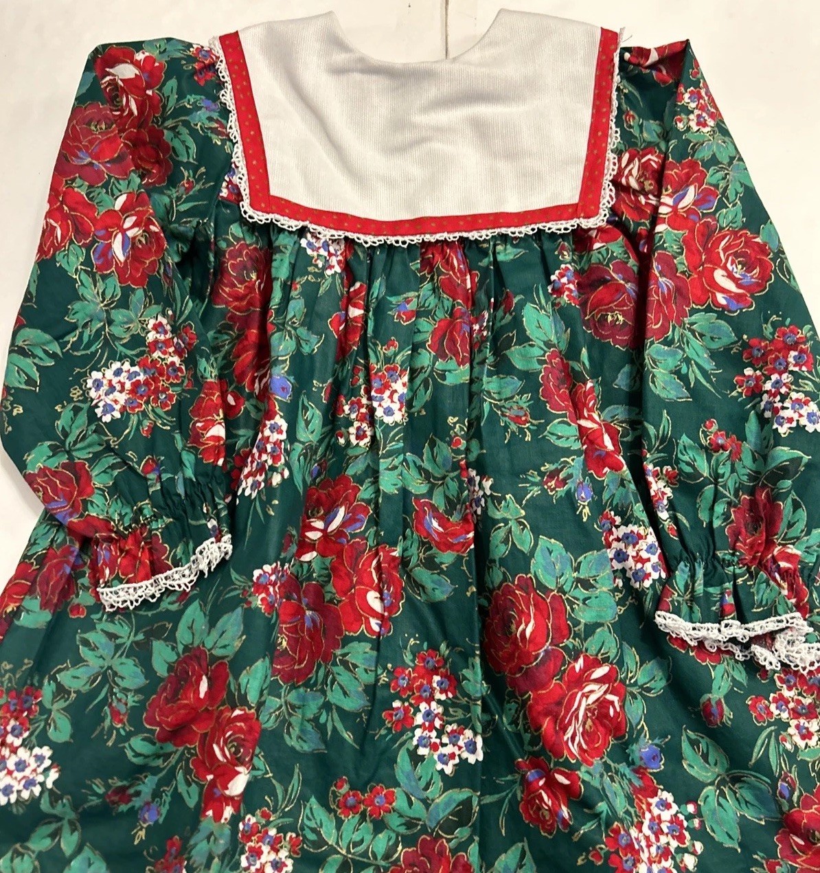 Vintage Bryan Christmas Red and Green Girl Dress Size 6x Long Sleeve Bib