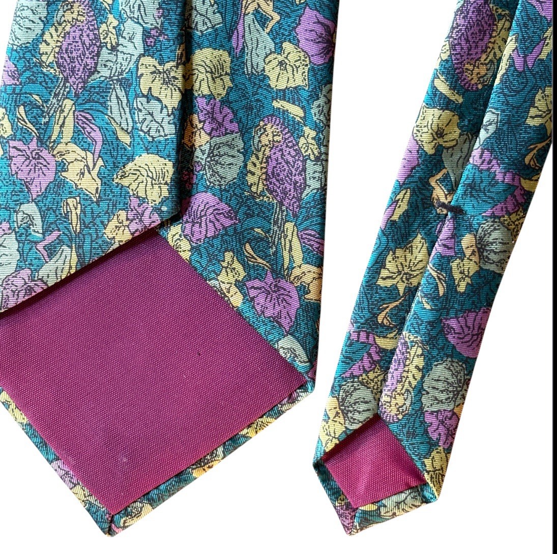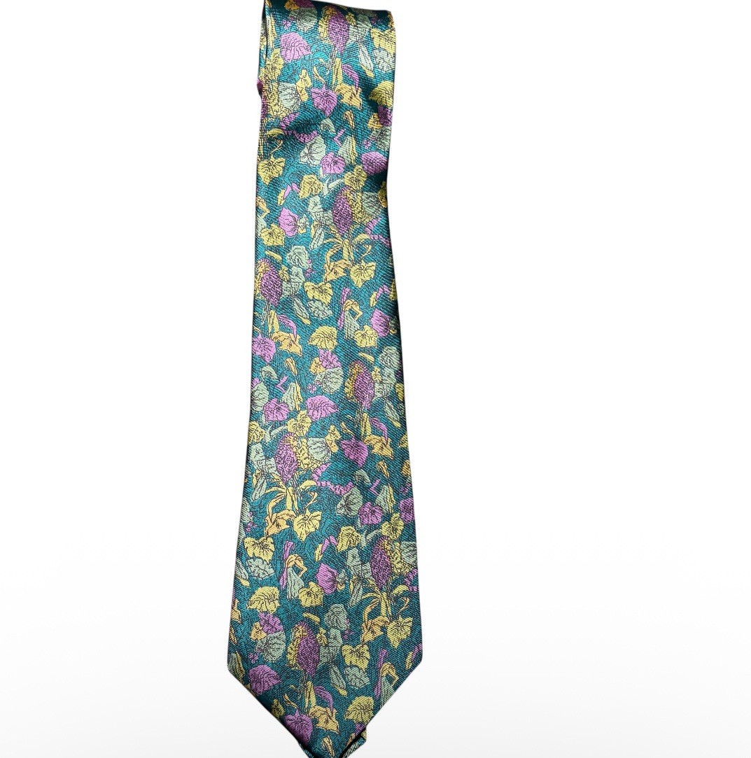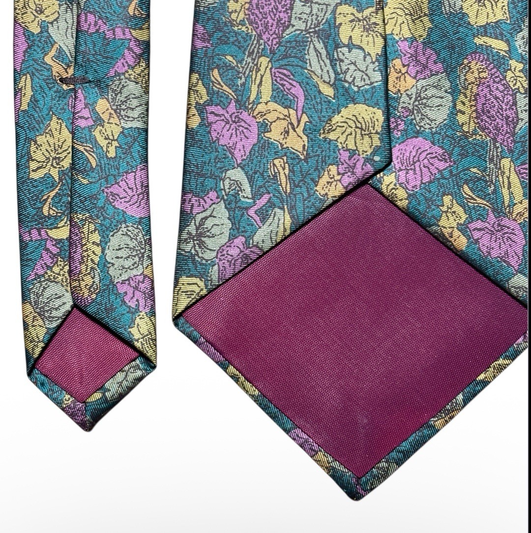 Guy Laroche Tie Mens One Size Multicolor Floral Silk USA Retro Chic
