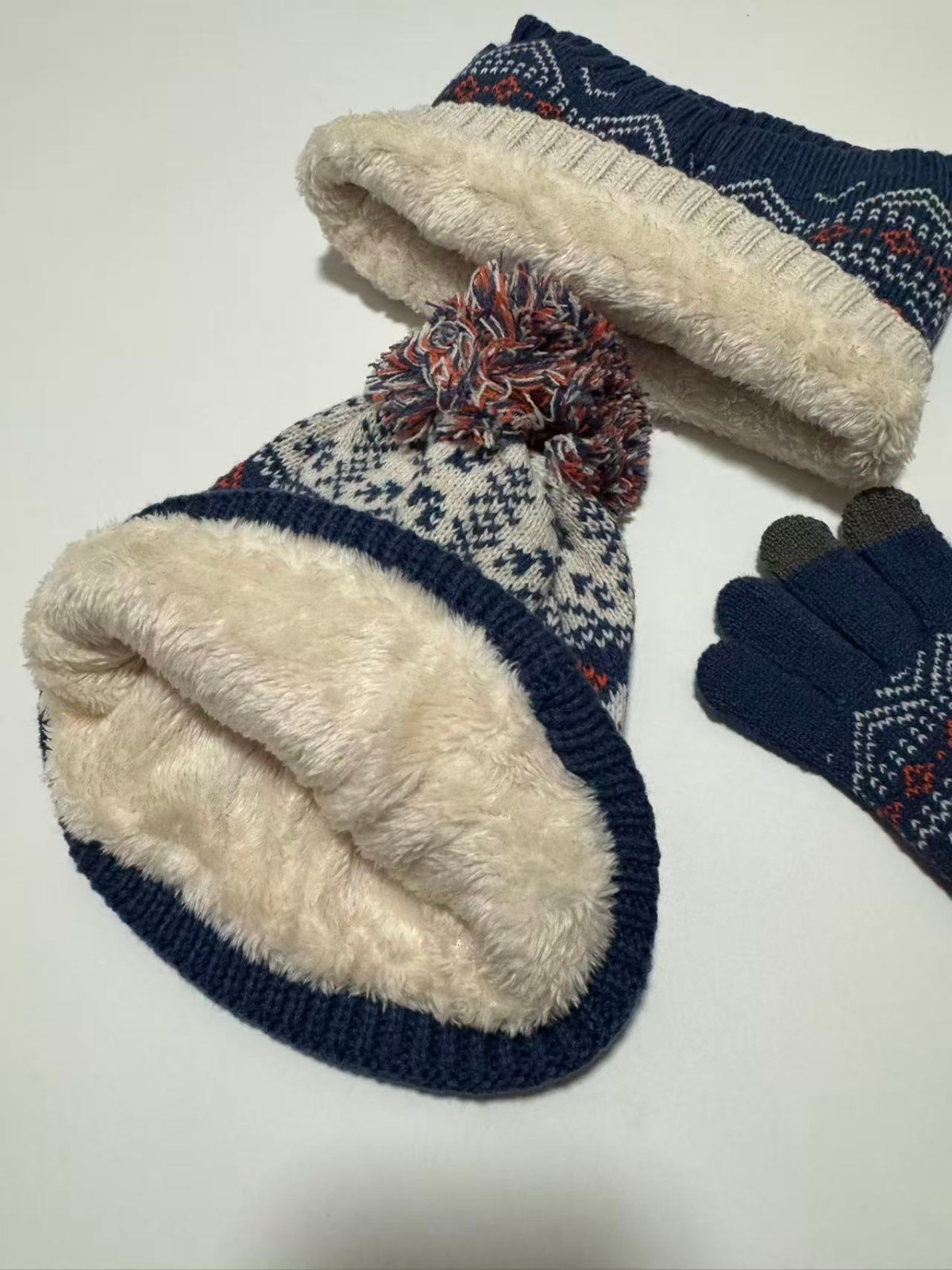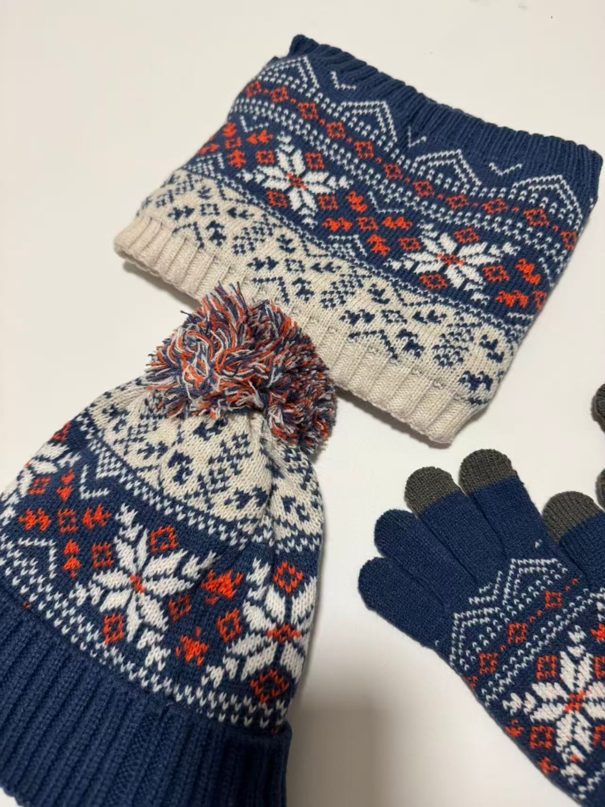 3X Kids Child Knit Fleece Cap Circle Scarf Winter Warm Hat Scarf and Gloves Set