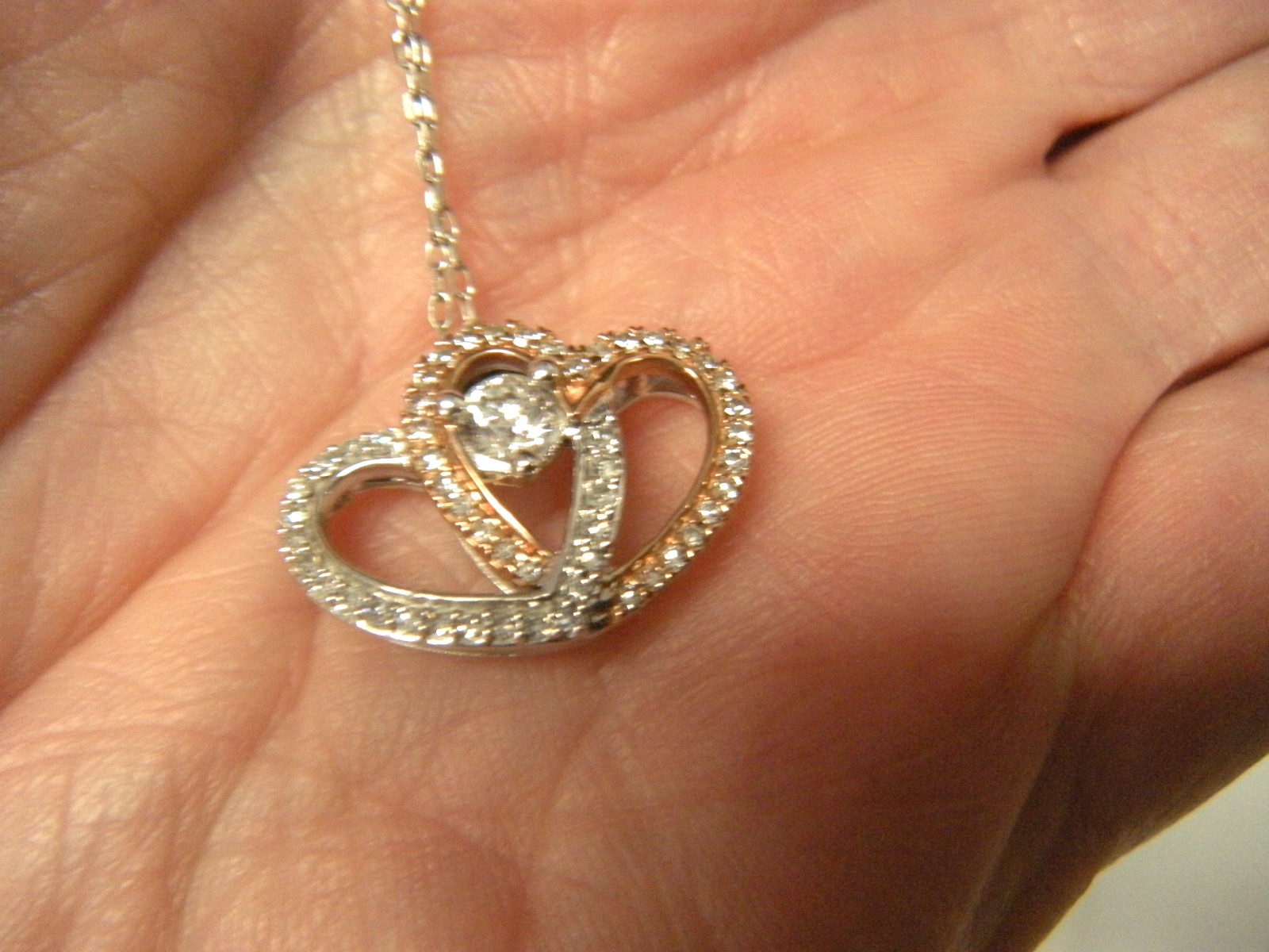 10K Diamond Pendant Necklace 18 Double Heart Rose Gold White Gold .47 ctw