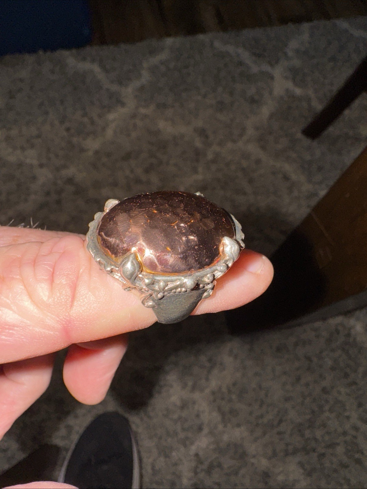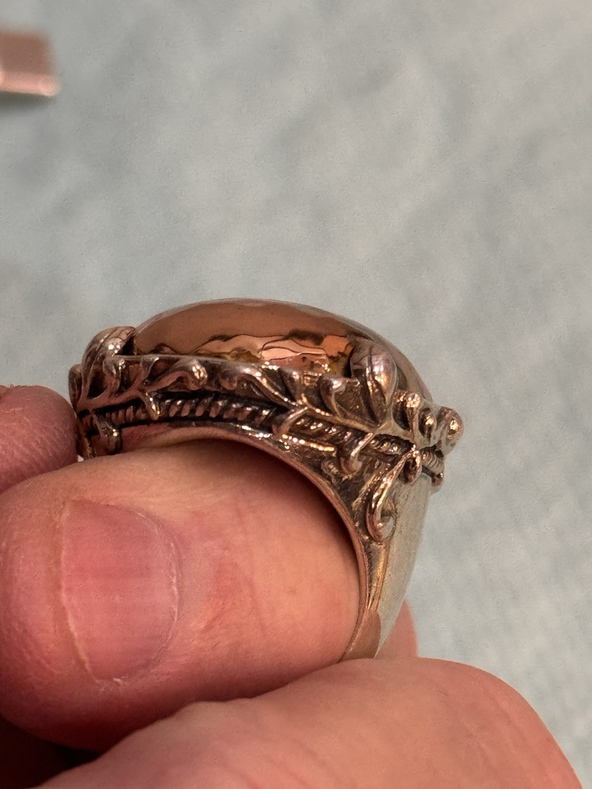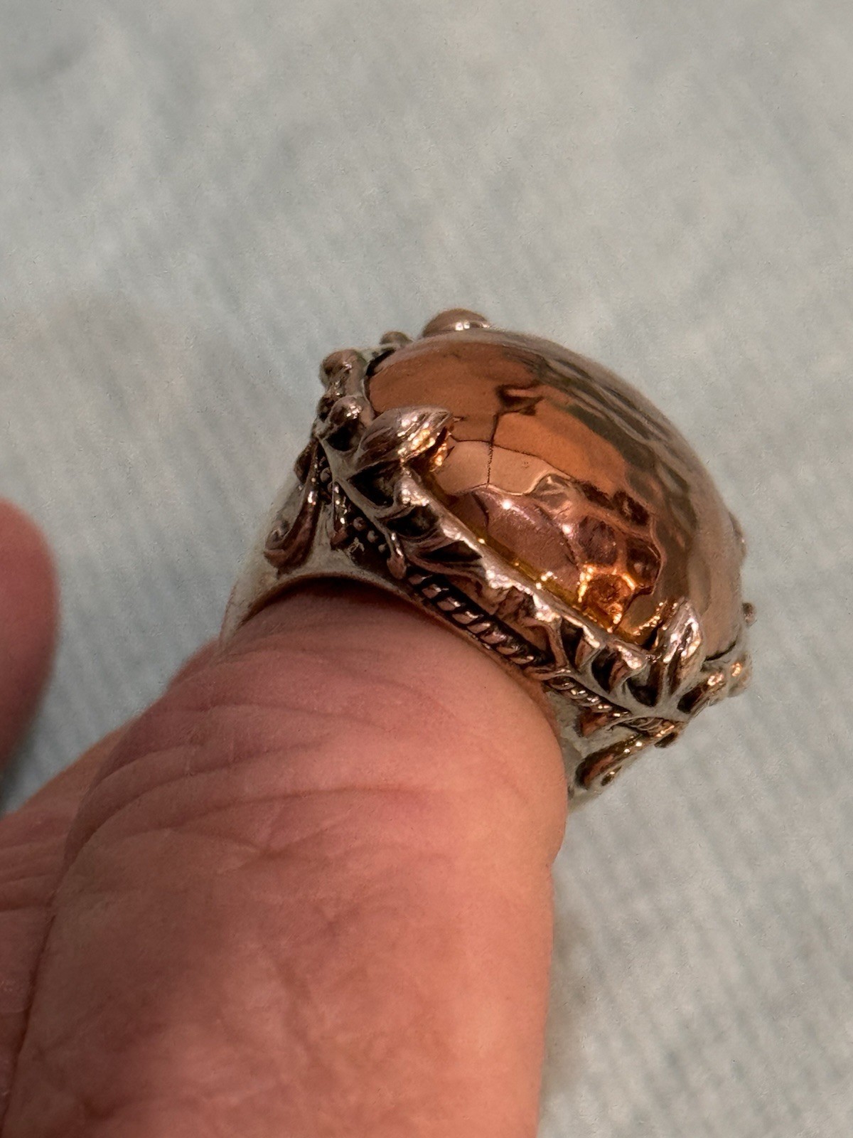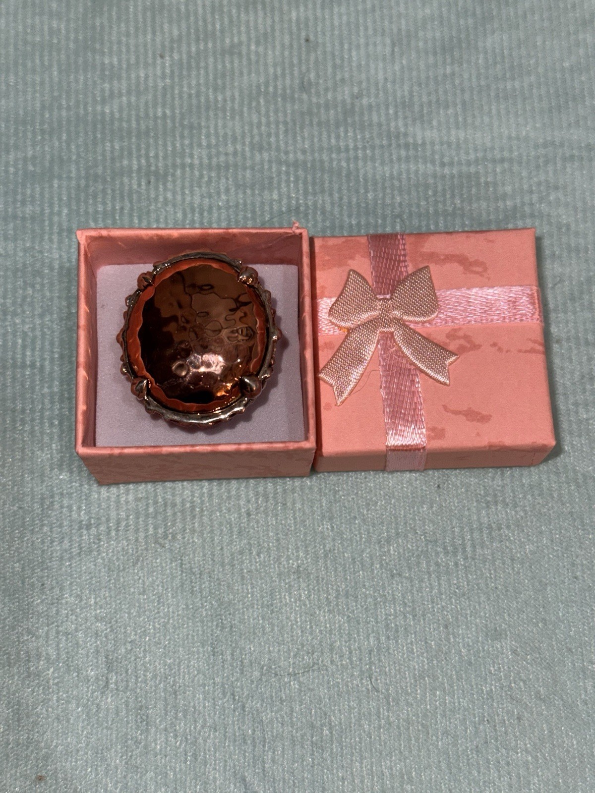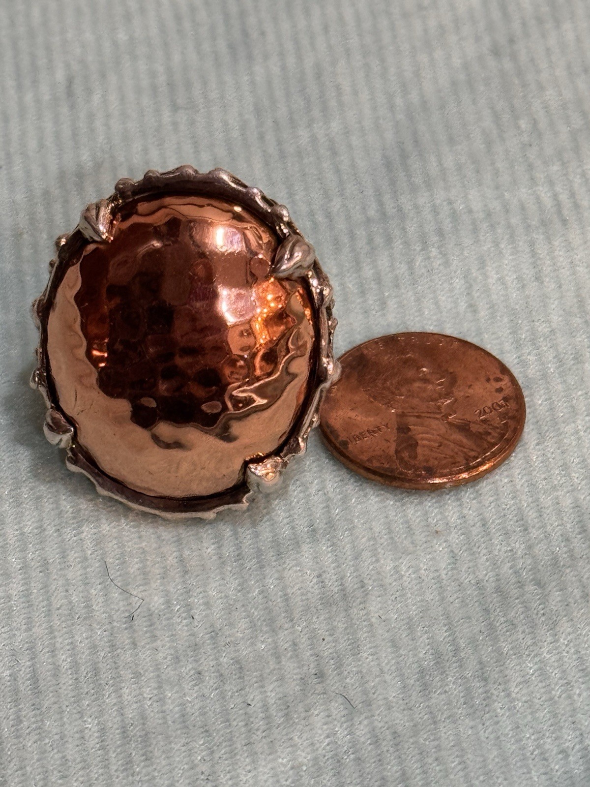 как выглядит New Hammered Copper In A Silver Metal Statement Ring Size 7 1.1/8 L x .7/8 W. фото