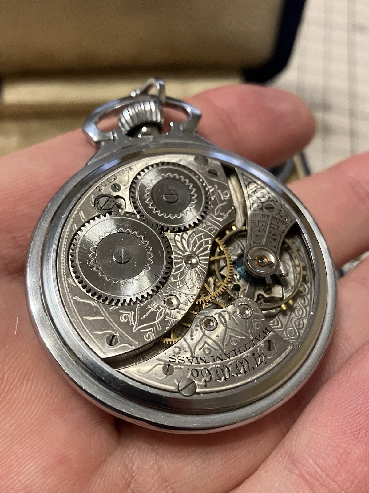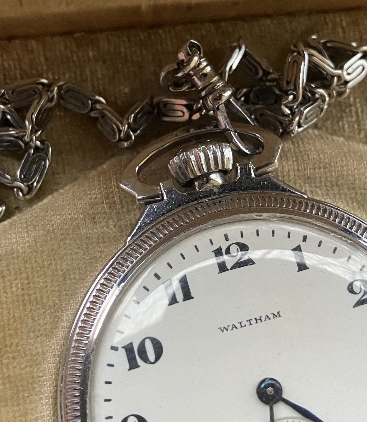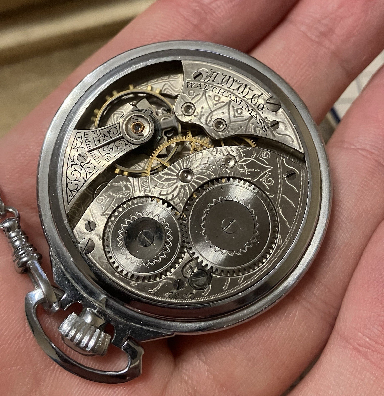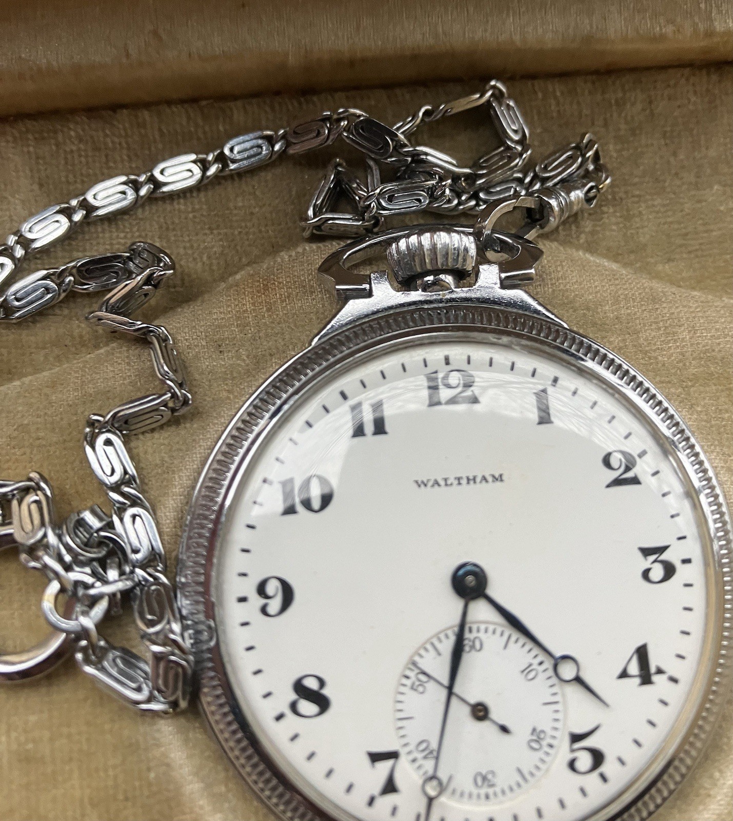 Waltham Nickel Chrome Antique Pocket Watch 7 Jewels 1916 With Chain Works