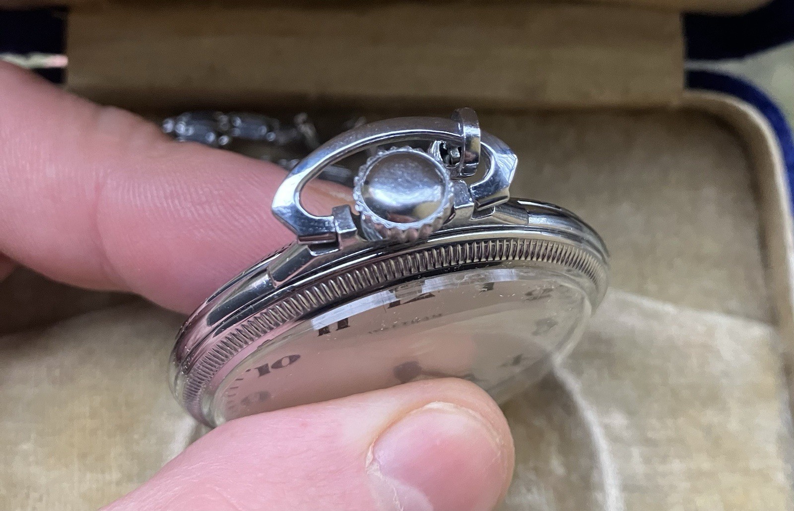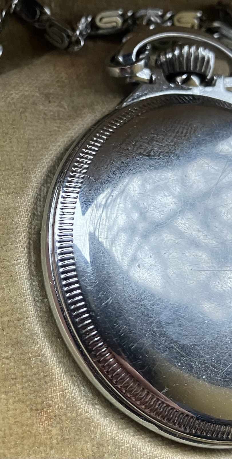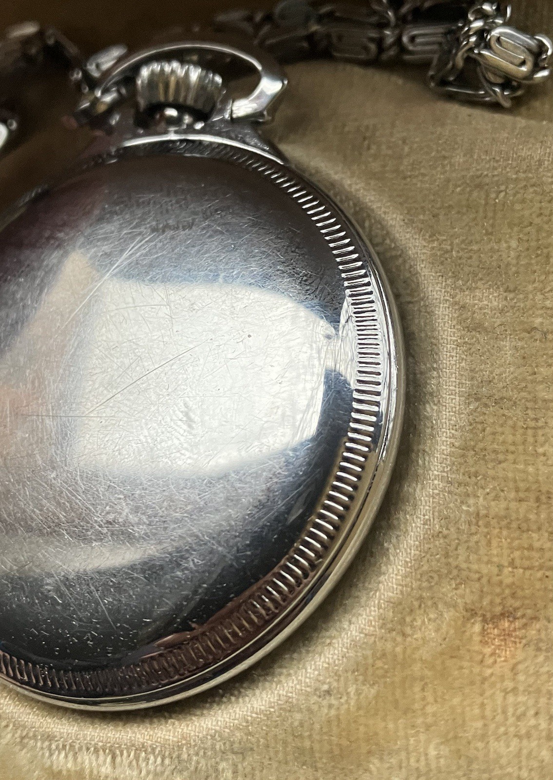 как выглядит Waltham Nickel Chrome Antique Pocket Watch 7 Jewels 1916 With Chain Works фото
