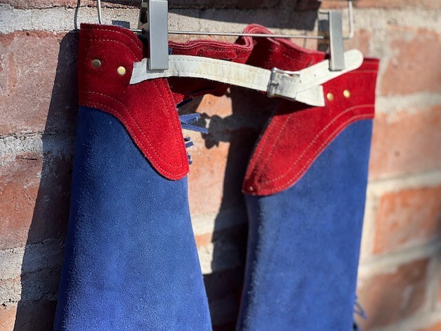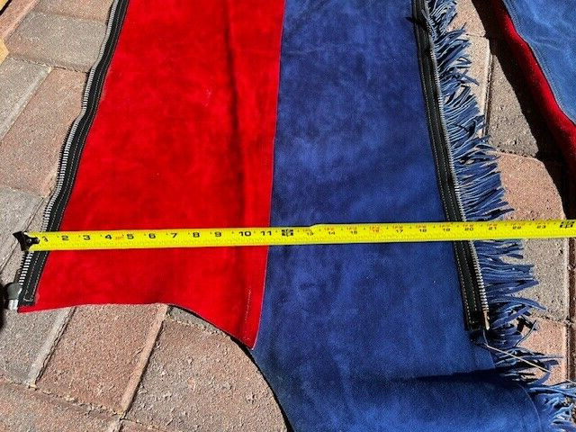 DEFECTIVE Red and Blue Western Leather Chaps Measurements in Photos G3D