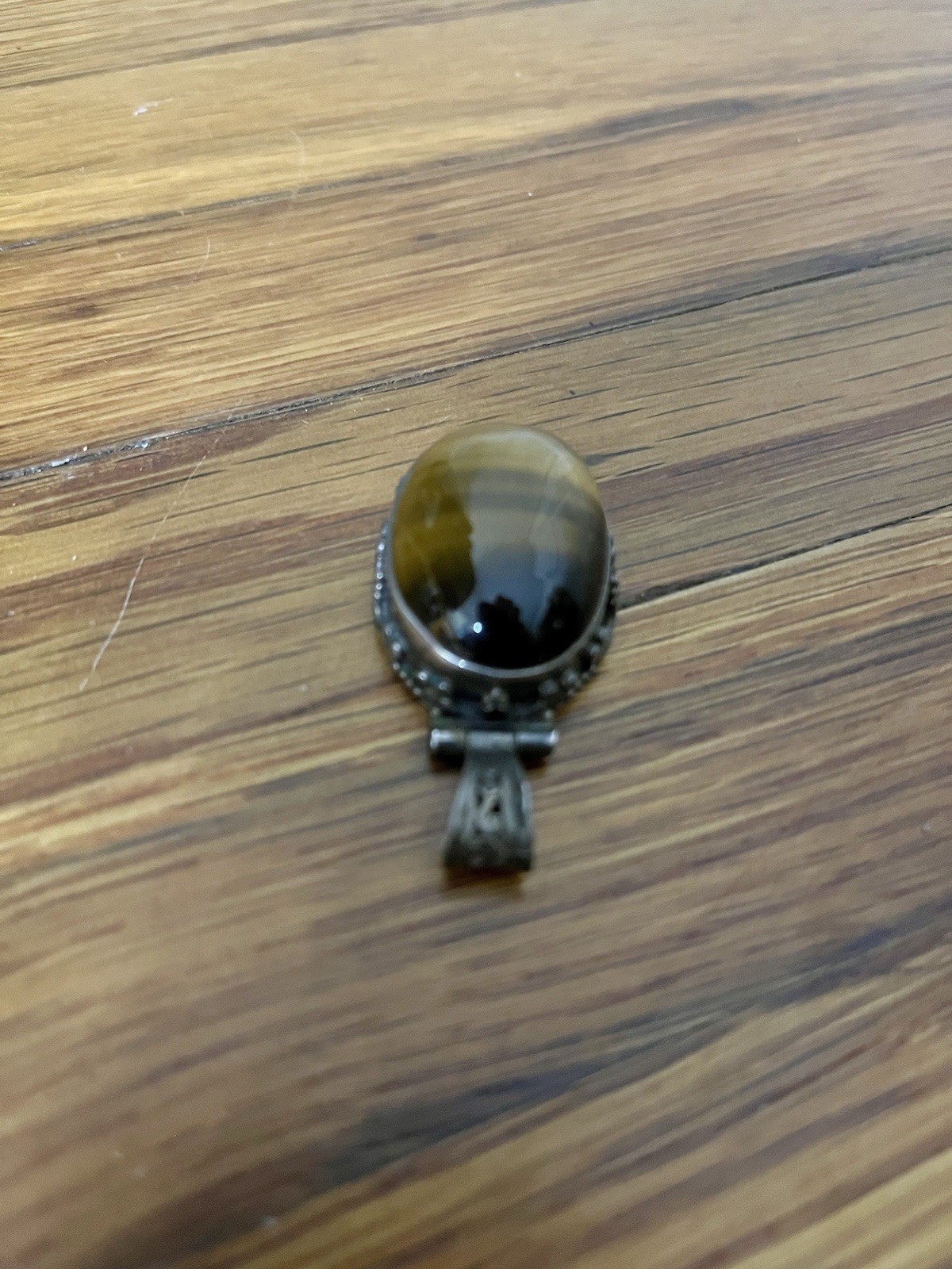 как выглядит Vintage Sterling Silver 925 Tiger Eye Pendant Large 2 фото