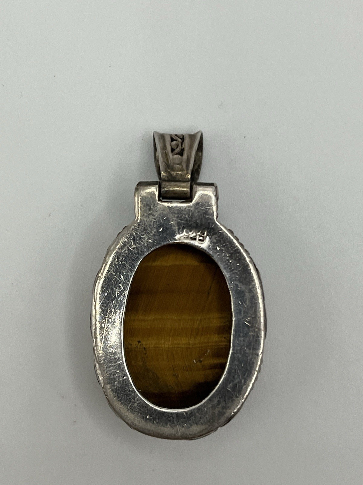 Vintage Sterling Silver 925 Tiger Eye Pendant Large 2