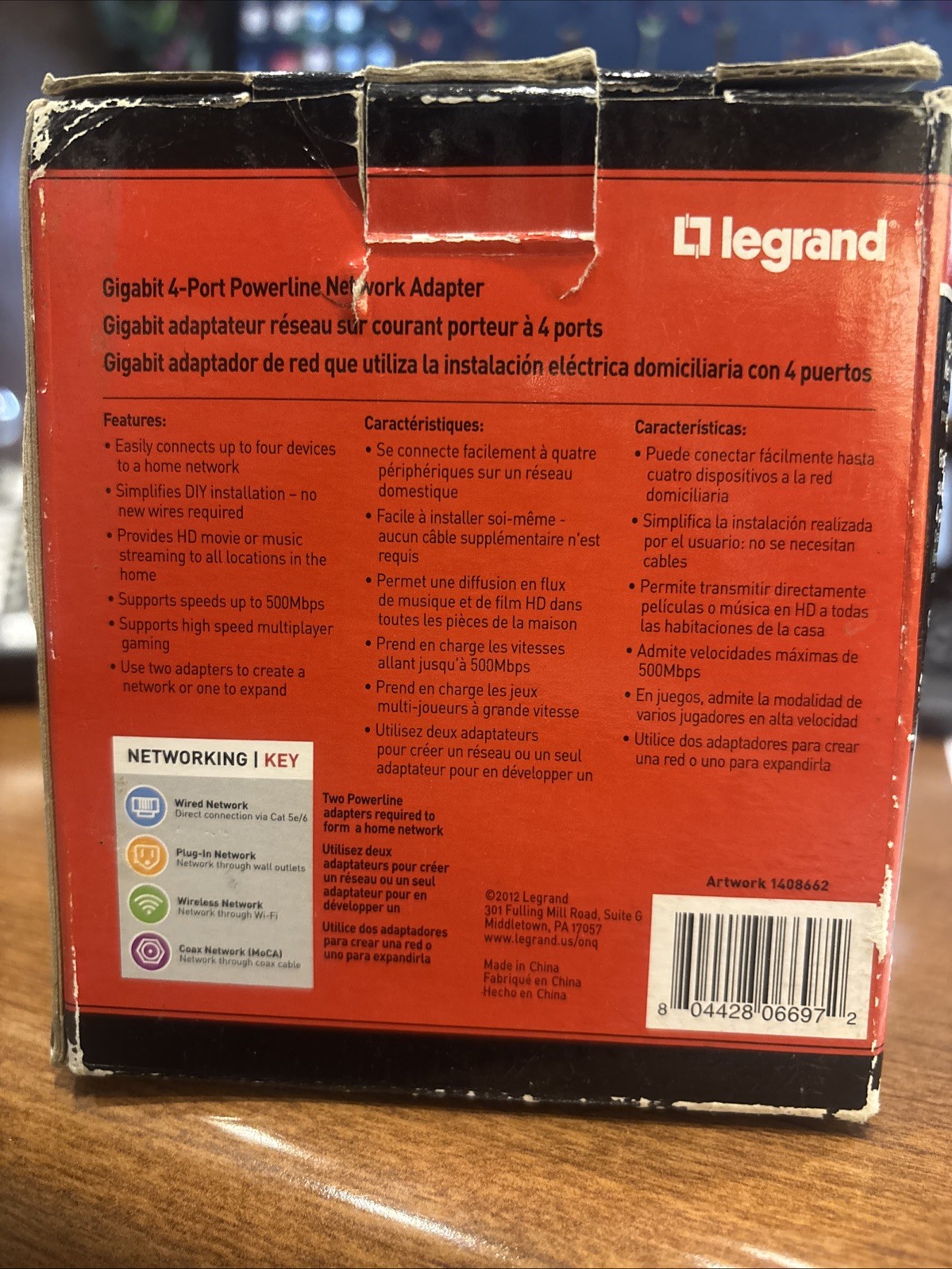 Legrand DA2304-V1 ON-Q Gigabit 4-Port Powerline Network Adapter