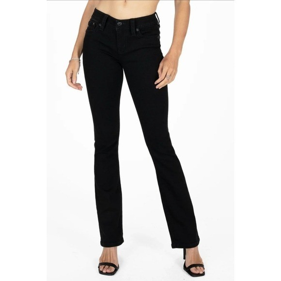 как выглядит NWT Miss Me Womens Mid-Rise Black Wing Bootcut Jeans, Size 26 фото
