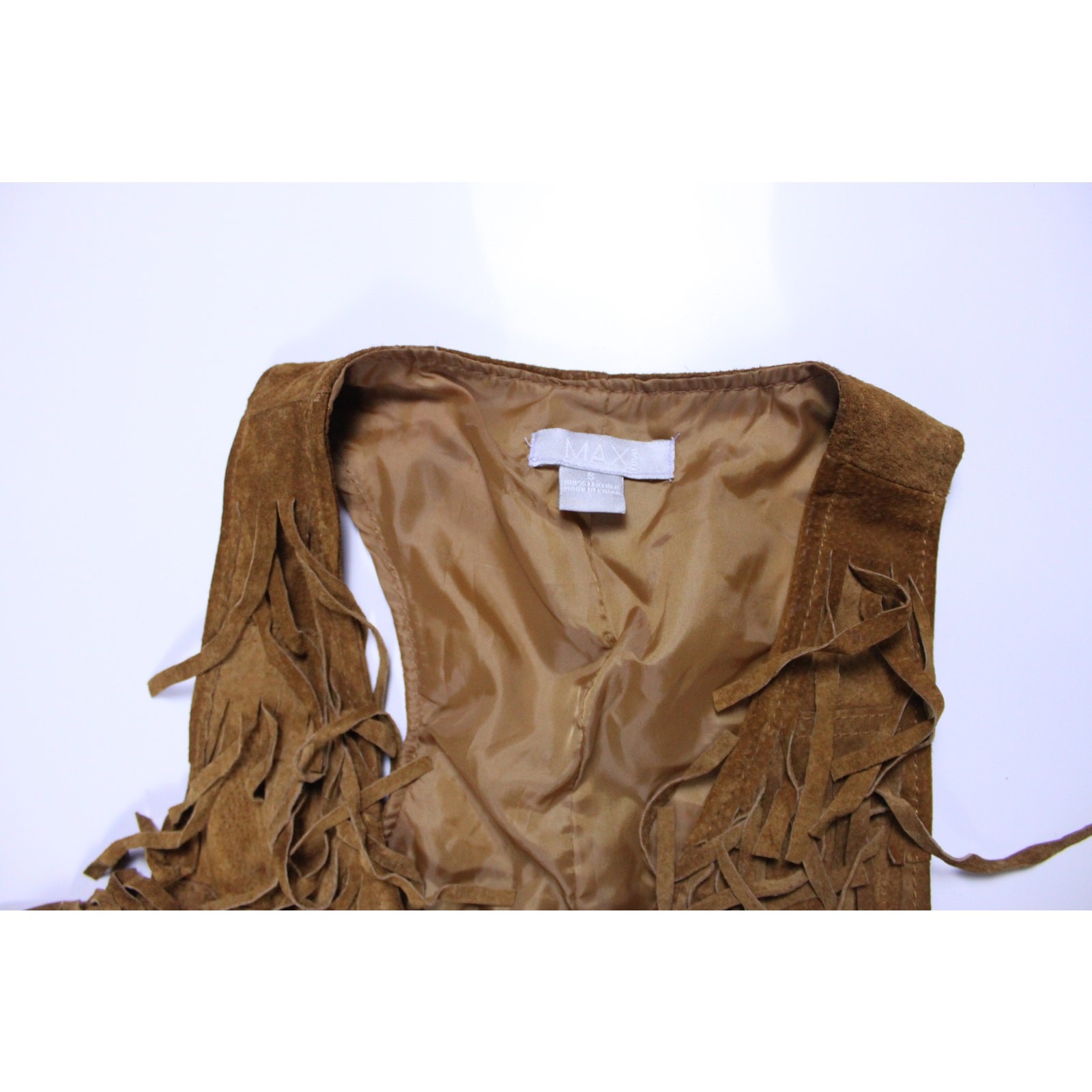 Vintage Y2K leather suede fringe vest jacket brown western festival cowgirl sz S