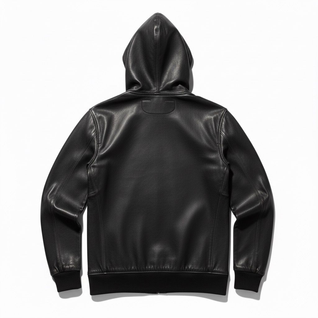 Men's Black Premium Leather Hoodie Handmade Genuine Lambskin Leather Jacket