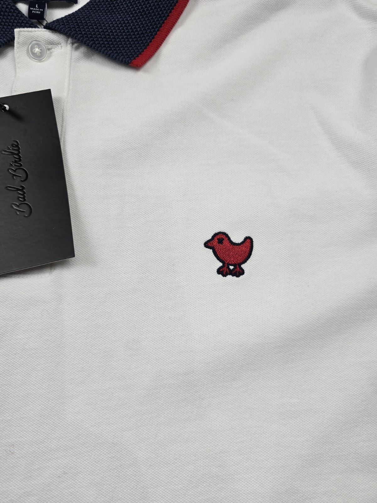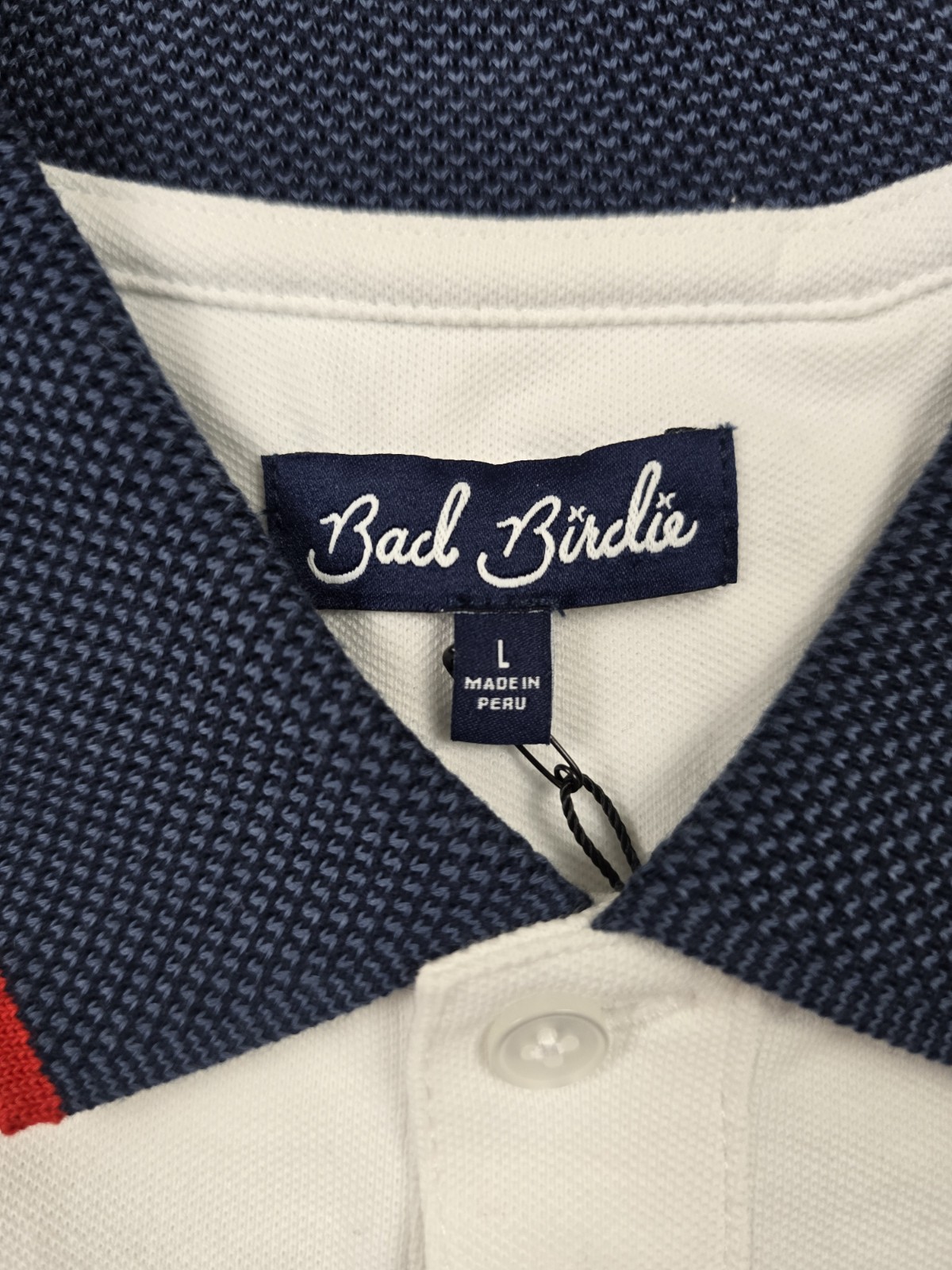 Bad Birdie Pique Golf Polo White Dark Navy Red Shirt Short Sleeve Mens L