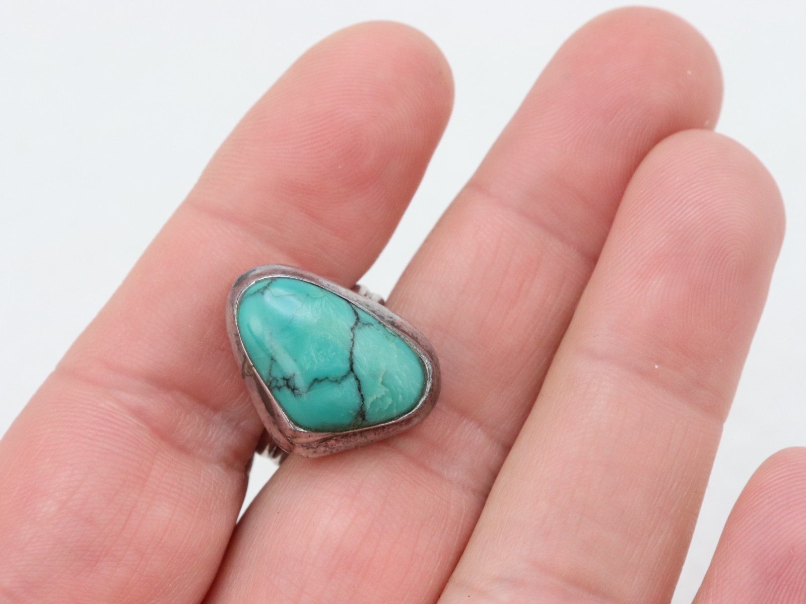 Sz7.25 Vintage 925 Sterling Silver Turquoise Gemstone Ring Mexico Navajo 7 Grams