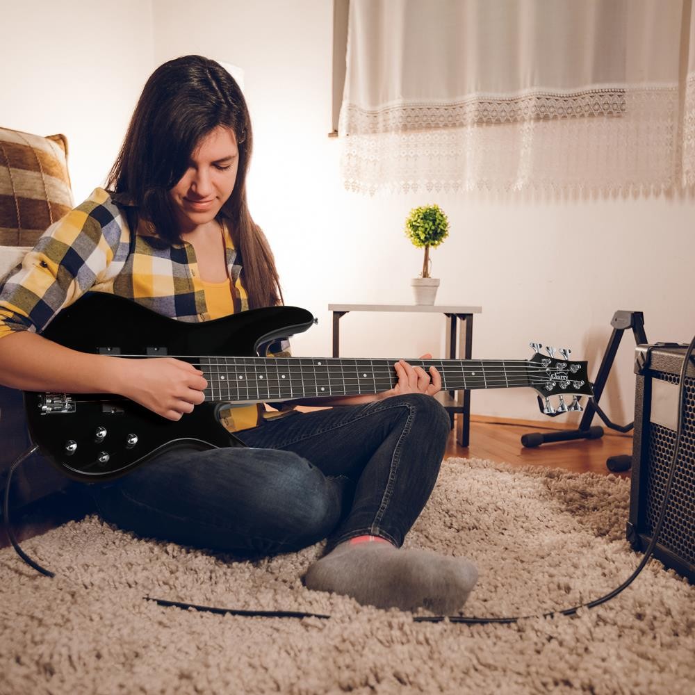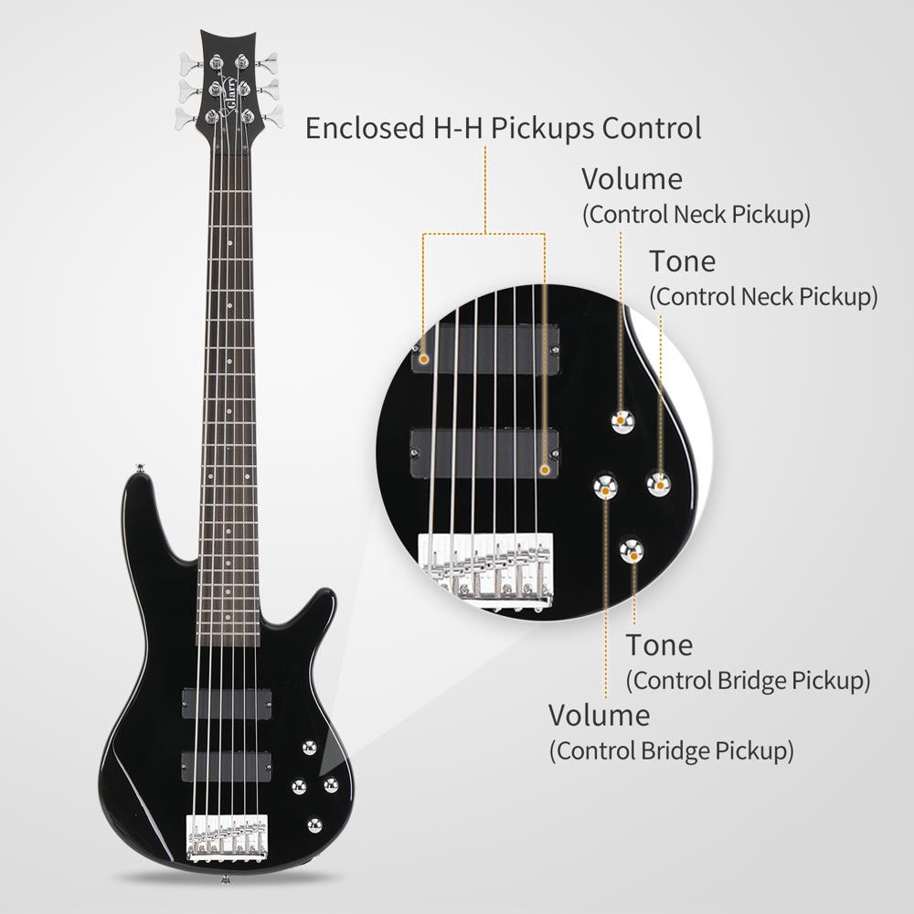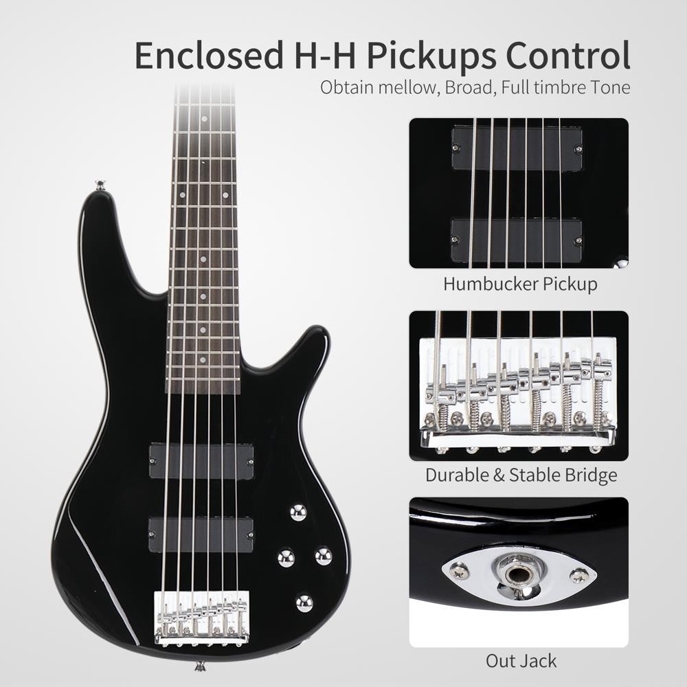 Glarry Full Size GIB 6 String H-H Pickup Electric Bass Guitar Bag Strap
