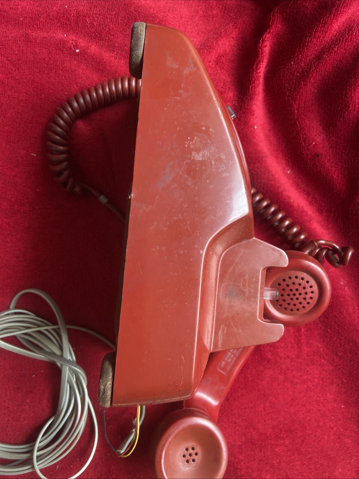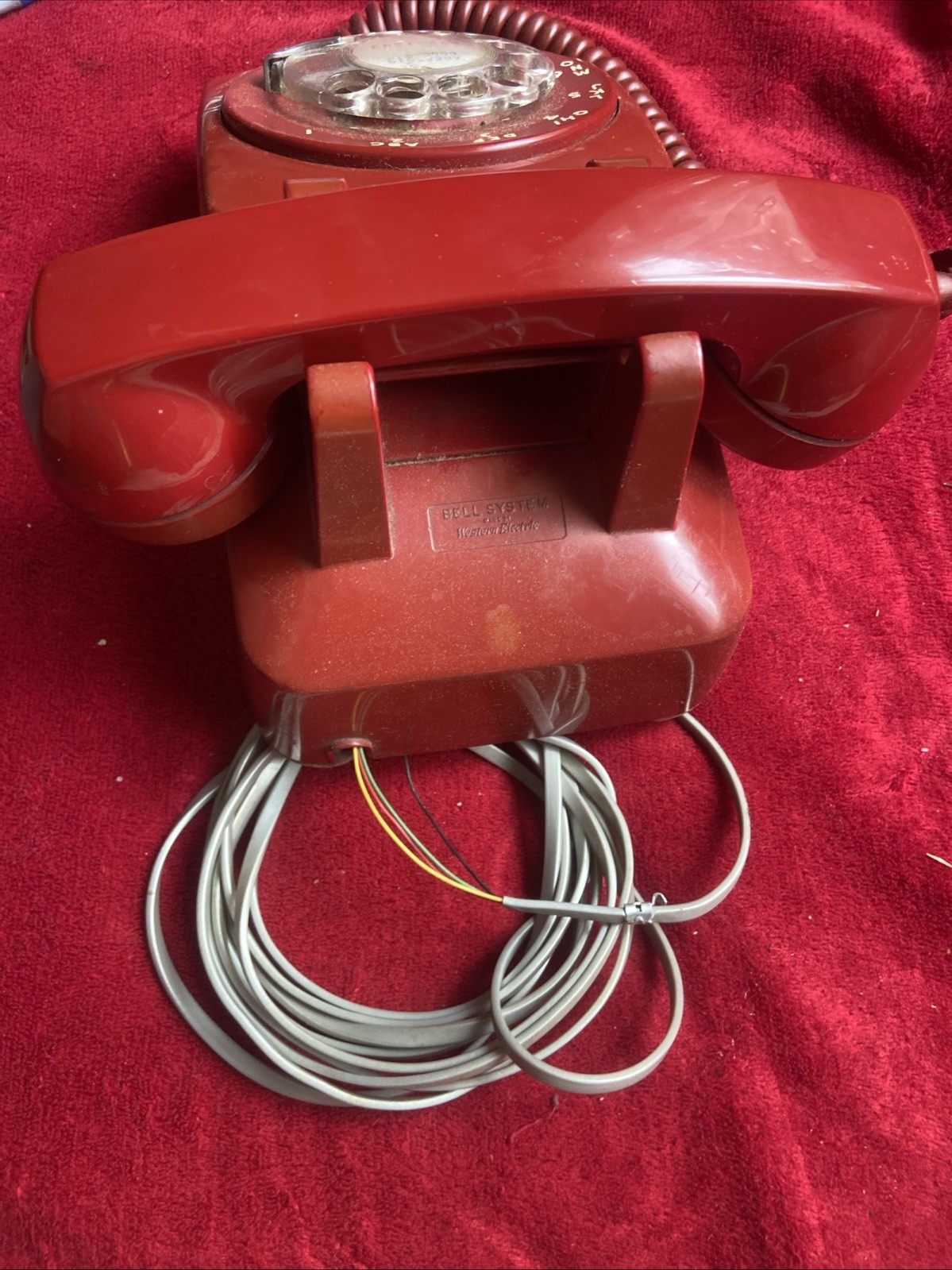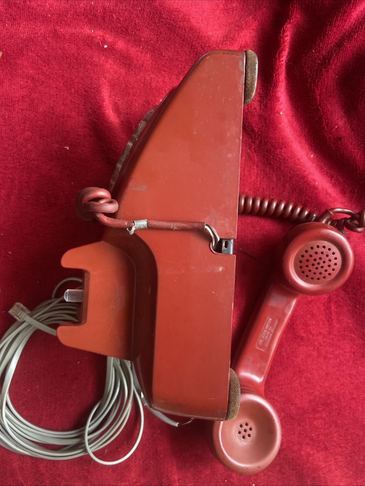 • Vintage Red Bell System Western Electric Rotary Dial Desk Phone Model 500