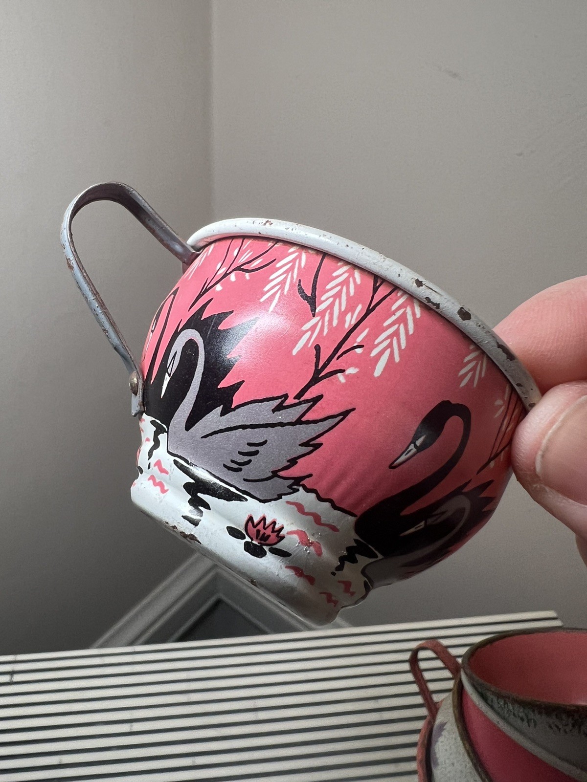 как выглядит Vintage Ohio Art Tin Litho Children s Tea Set Cups- 5 Assorted Prints фото