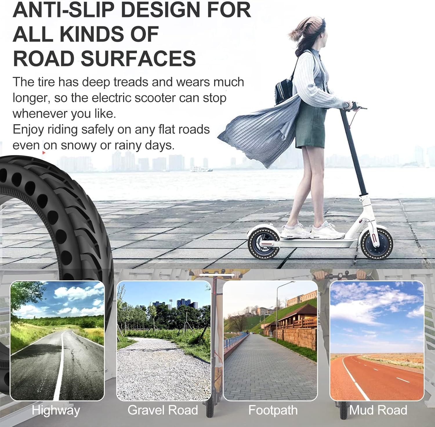 Electric Scooter Tire 8.5x2 Rubber Solid 4-Ply Anti-Shock for Gotrax Xiaomi