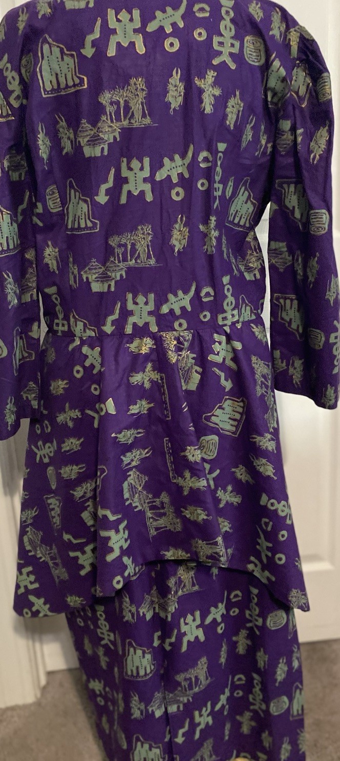как выглядит African 2Pieces Skirt Set Button Front Purple/Gold Long Sleeve Matching Cap WM фото