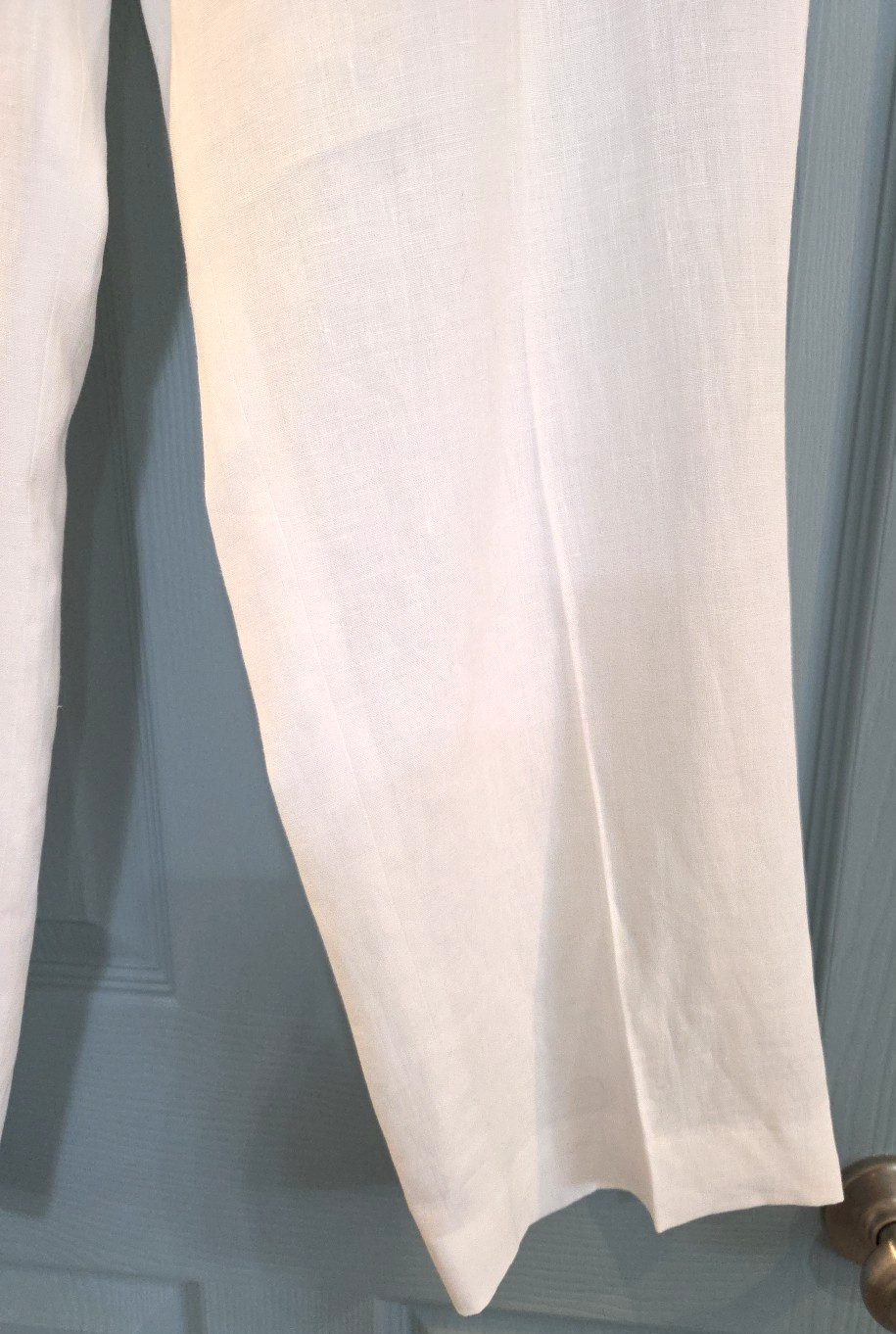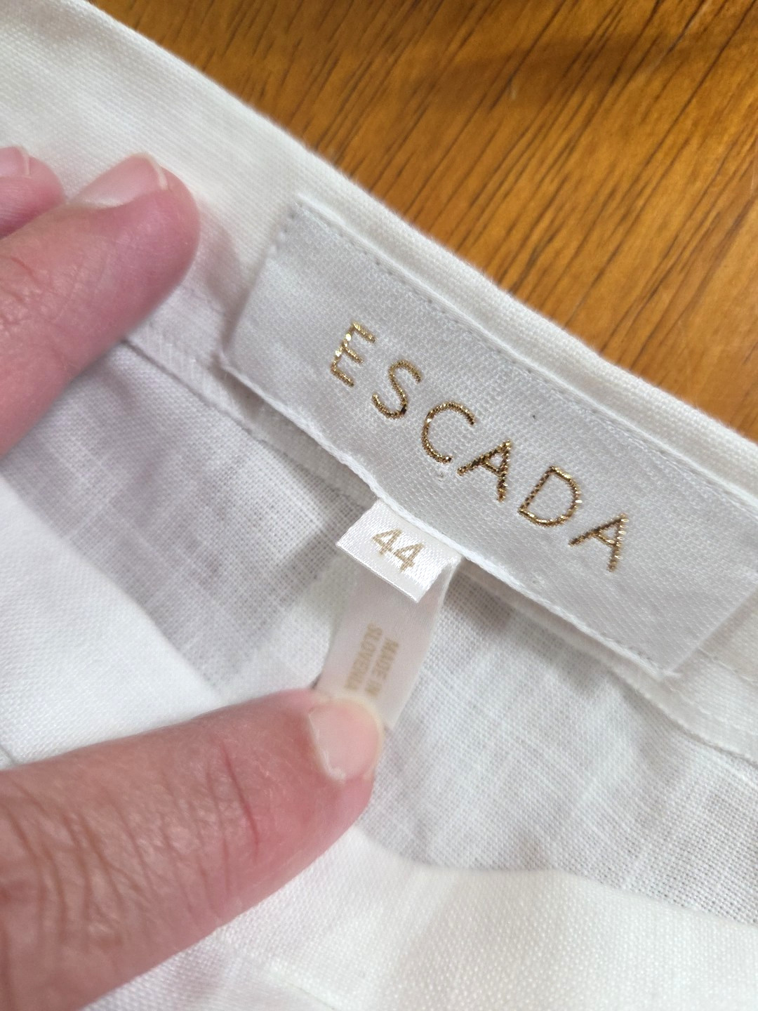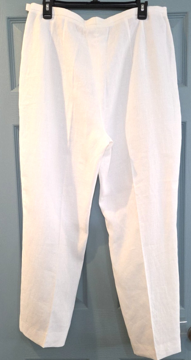 как выглядит Escada White 100 Linen Designer Straight Leg Pants Beach Luxury sz 44 US 12 фото