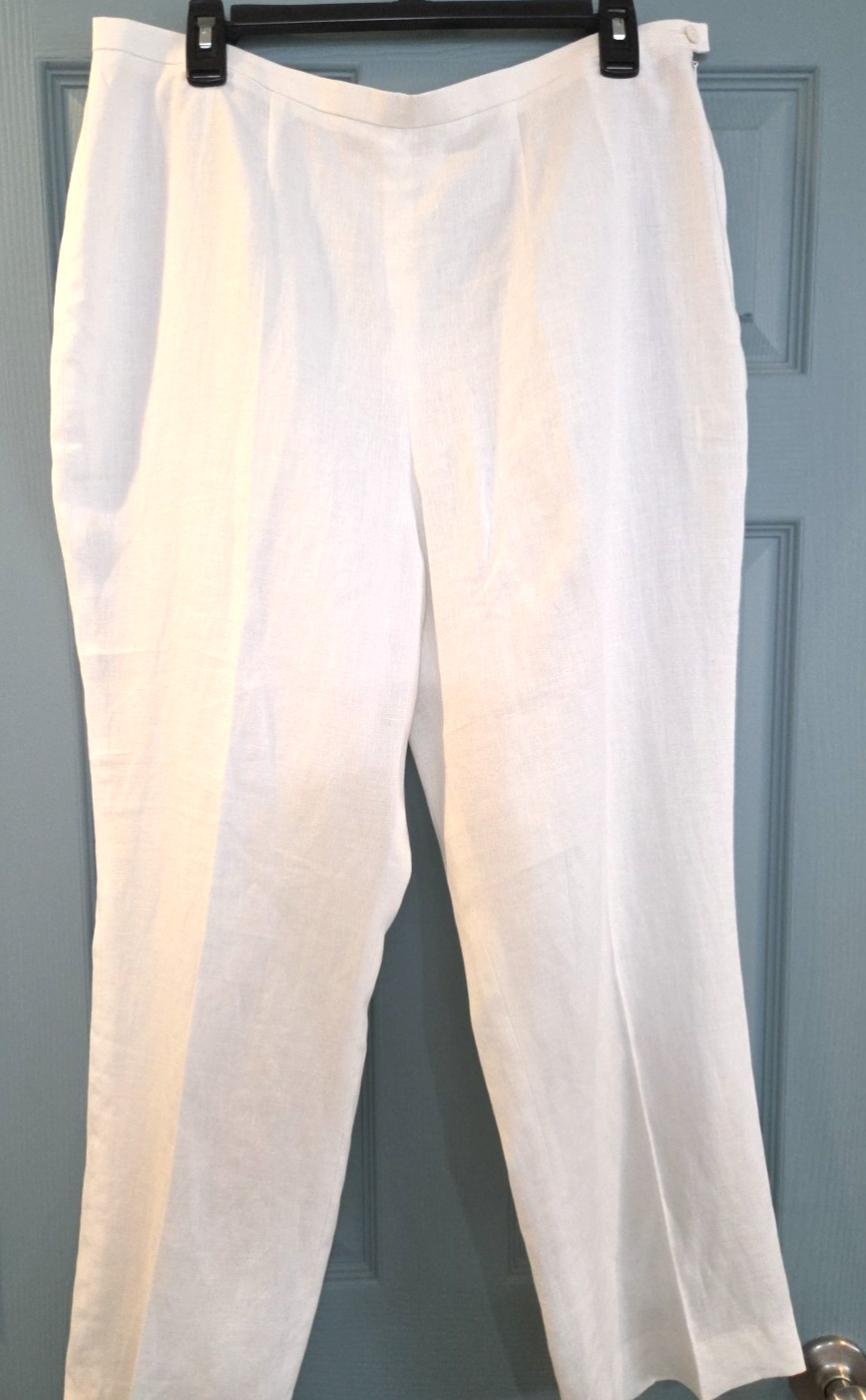 Escada White 100 Linen Designer Straight Leg Pants Beach Luxury sz 44 US 12