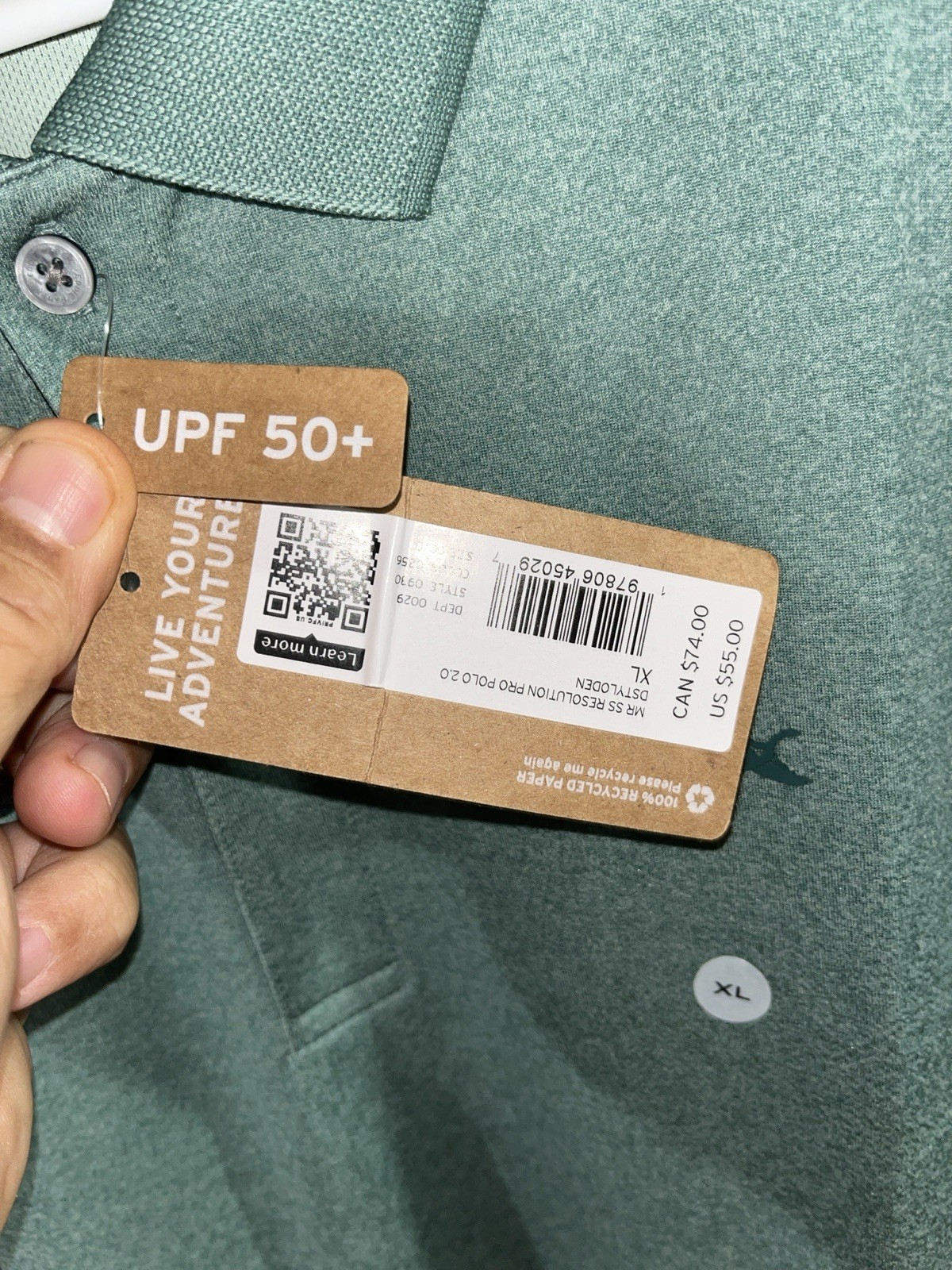 NWT Eddie Bauer Resolution Pro UPF 50 Polo Shirt Green Mens XL 55