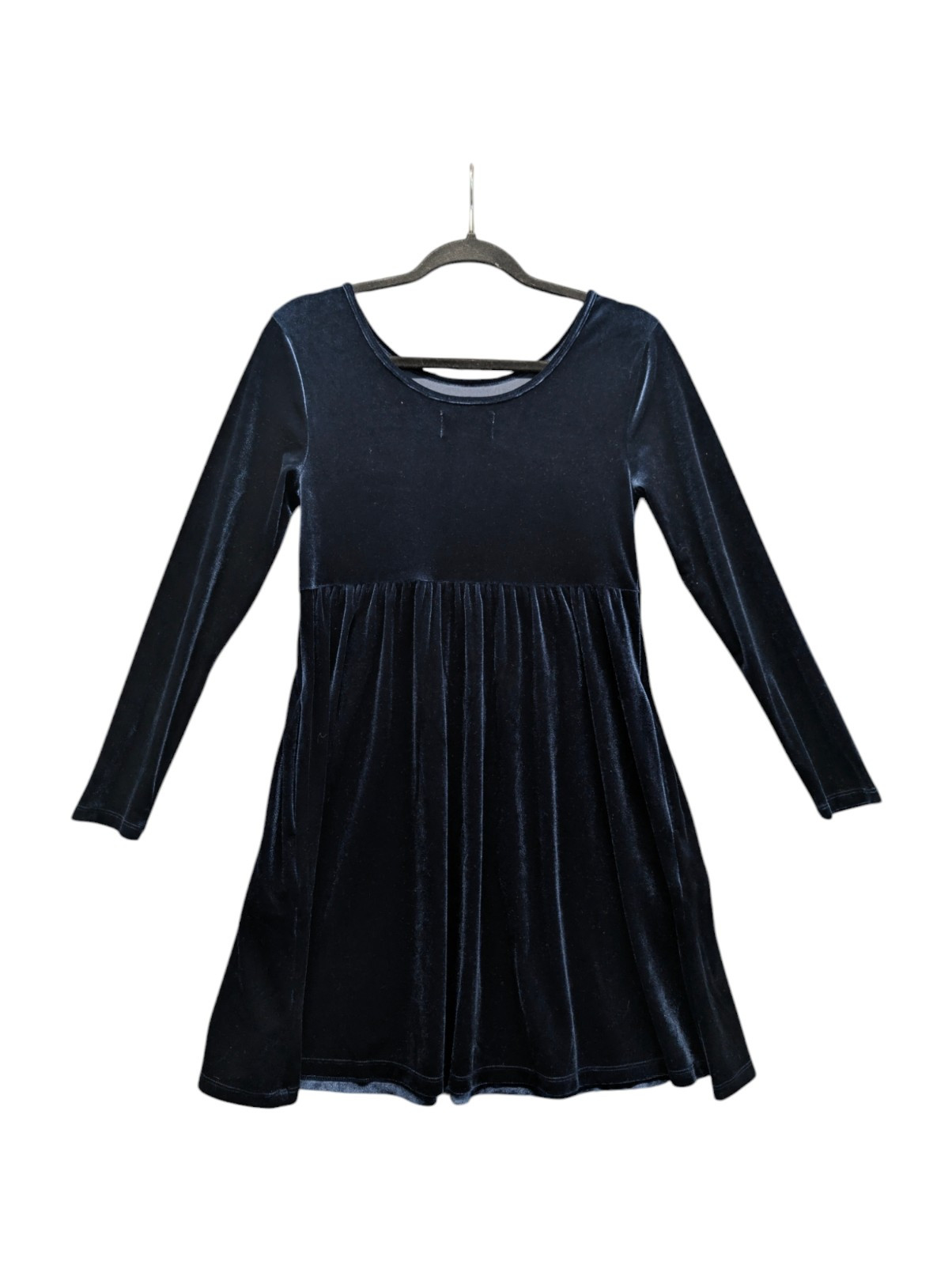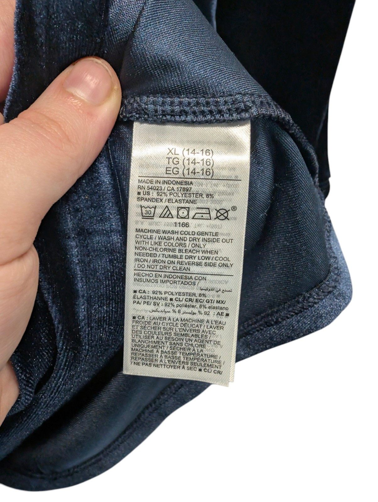 Old Navy Velour Fit Flare Dress Girls Sz XL 14/16 Deep Blue Stretchy NWOT