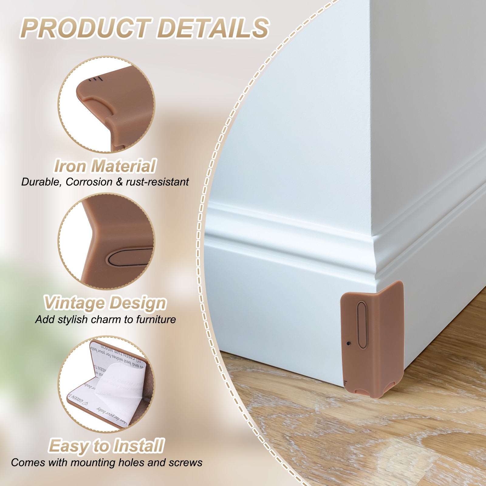 как выглядит 4 Pcs 4 Inch Baseboard Corner Protector, Furniture Corner Cover, Coffee фото
