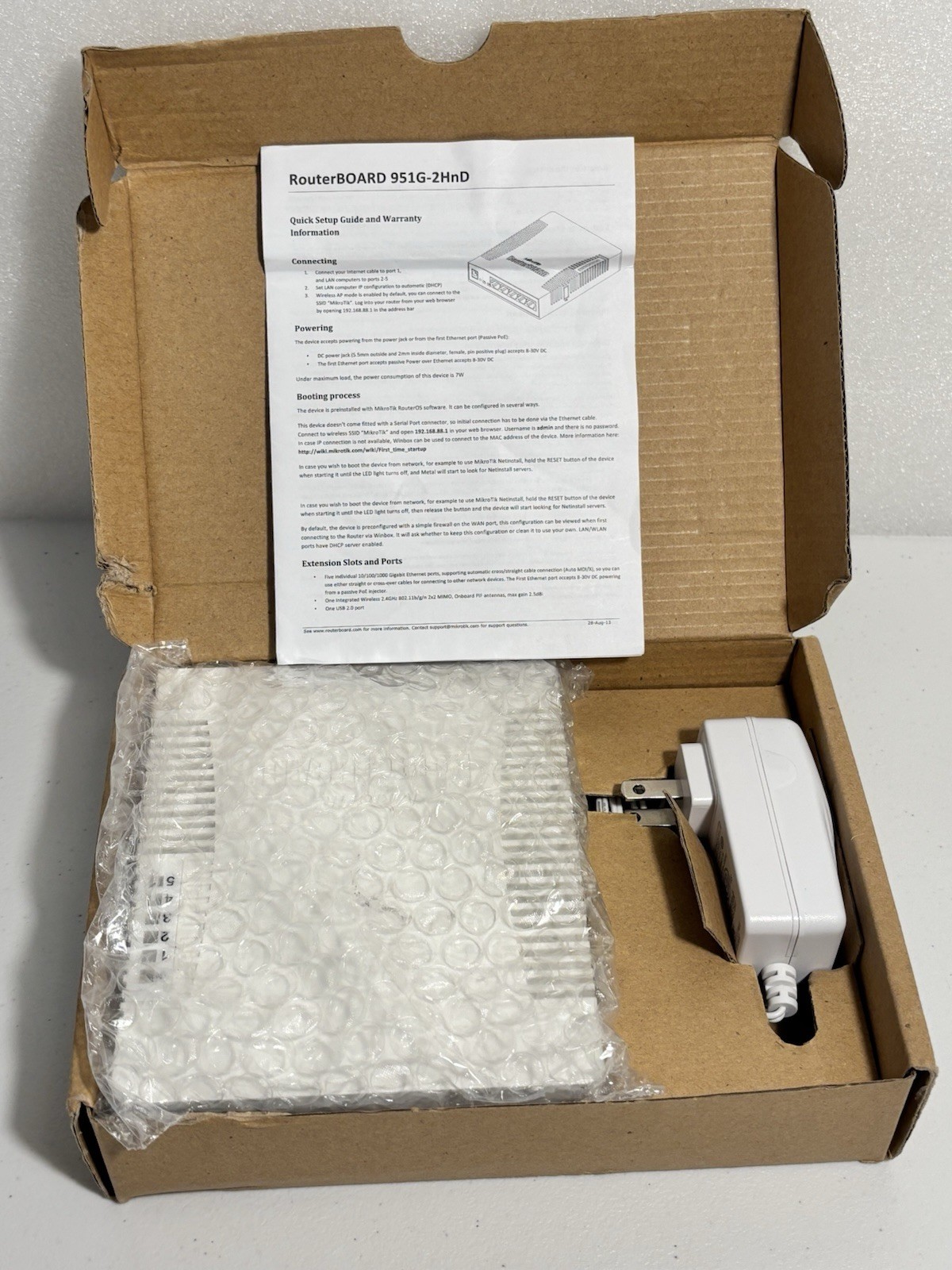 Mikrotik RouterBoard RB951G-2HnD Wireless AP Router 5-Port GbitLAN w/ Adapter