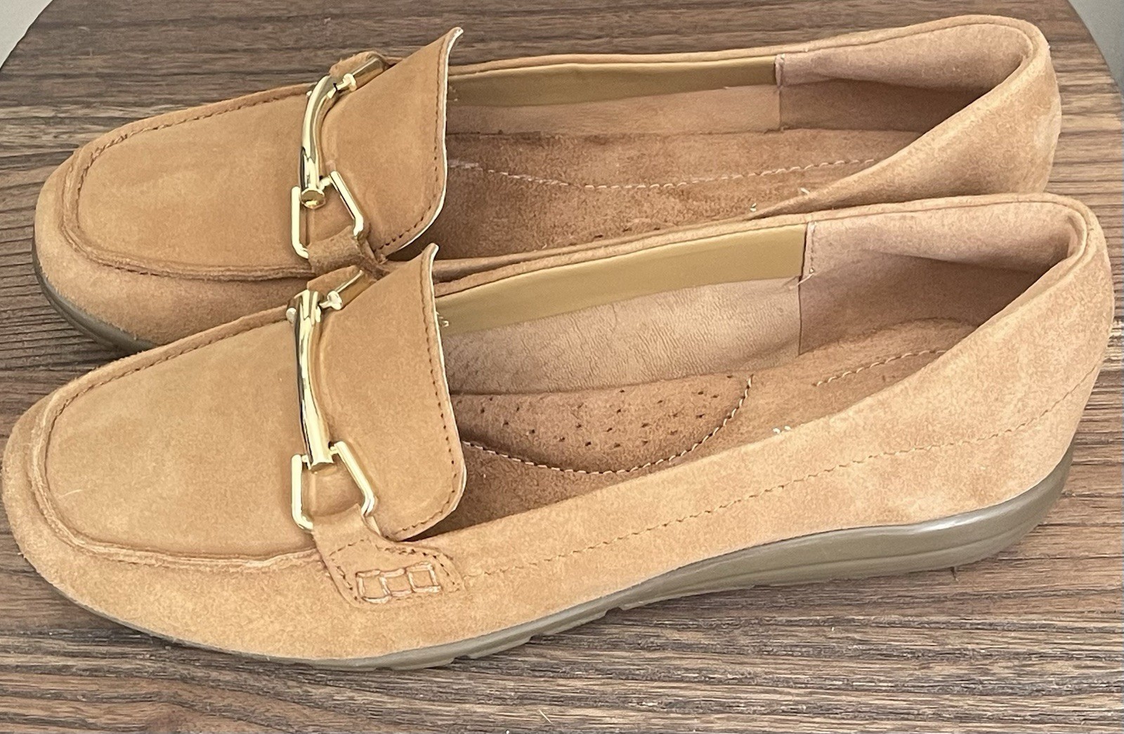 как выглядит NWOB Easy Spirit Amalie Slip On Loafers Womens Suede Camel Comfort Size 7.5 Wide фото