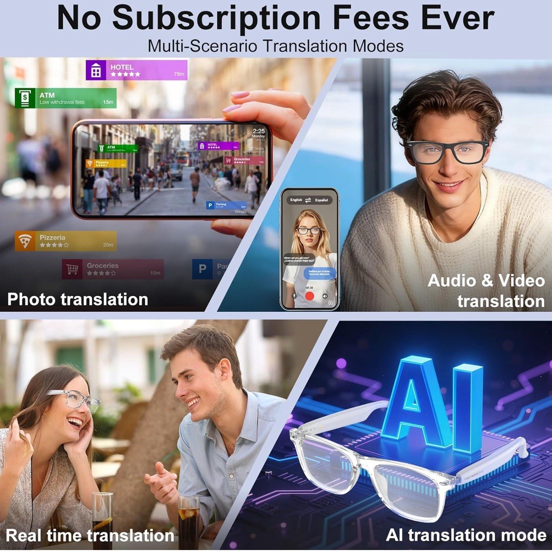 Special Feature: 164 Translation, Anti-blue Light, Color-Change Lens, Music Player