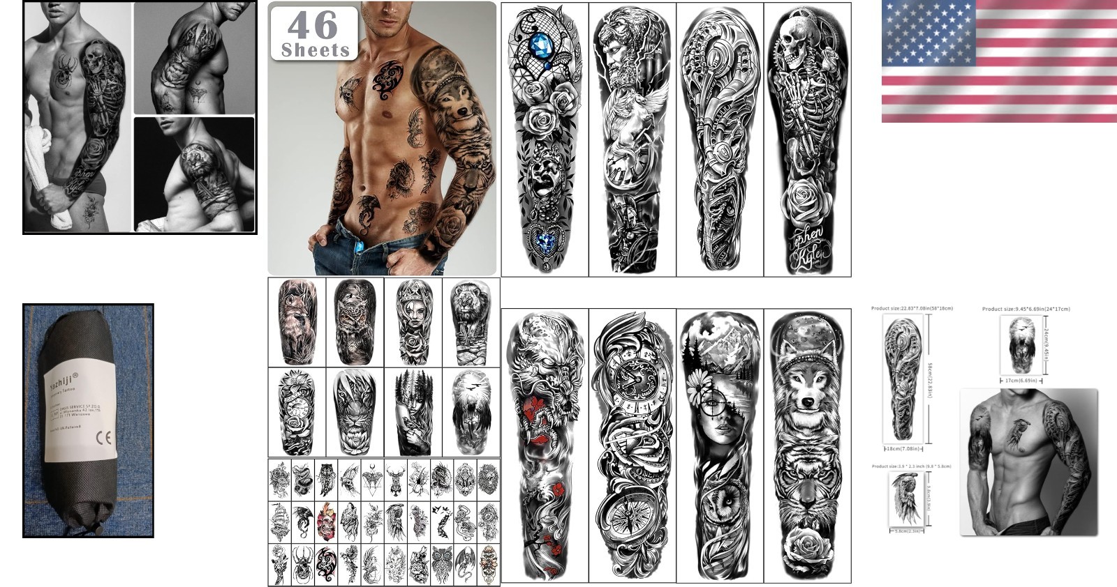 46 Sheets Assorted Full Half Arm Water-Resistant Temporary Tattoos