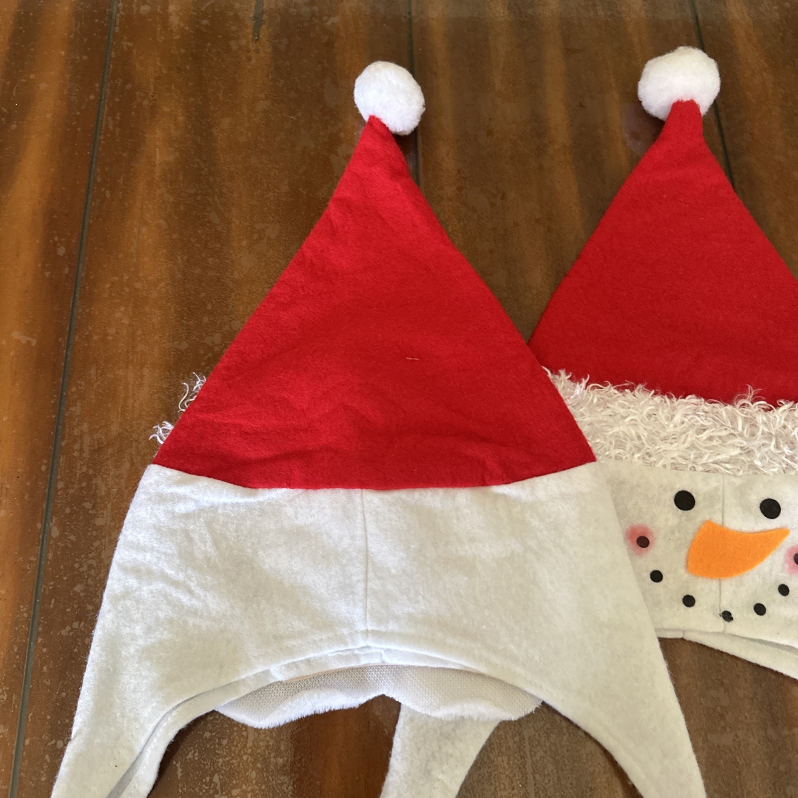 как выглядит 2 Christmas Hats Boys Girls Santa SnowMen Pom Poms Cute Fun Wear фото