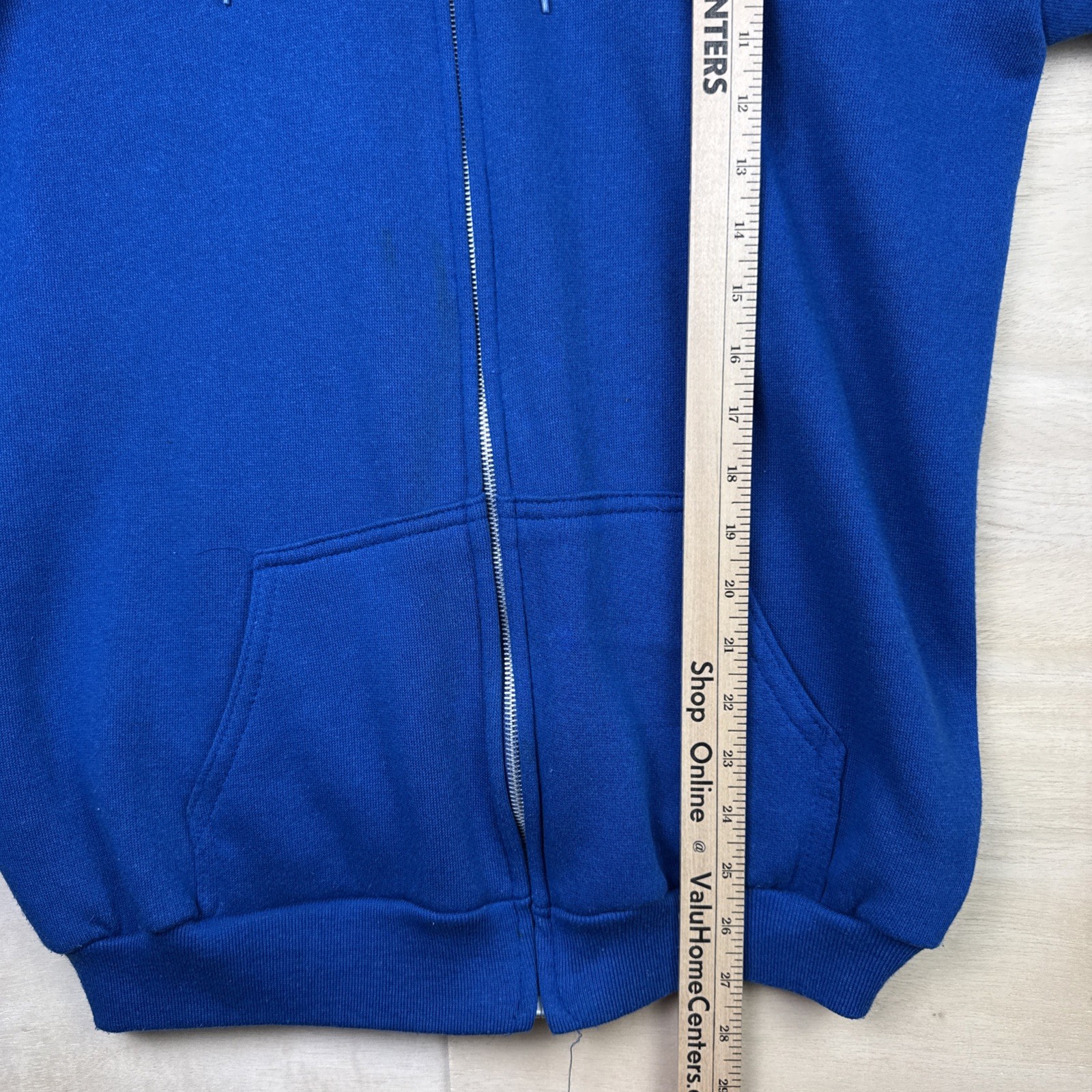 Vintage 80s Zip Up Blue Hoodie Sweatshirt Ideal Zipper Distressed Large 22 x 27
