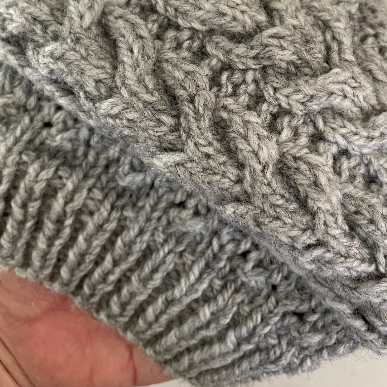 как выглядит Kids One Size Handmade Knit Hat Gray Cable Knit Winter Beanie фото