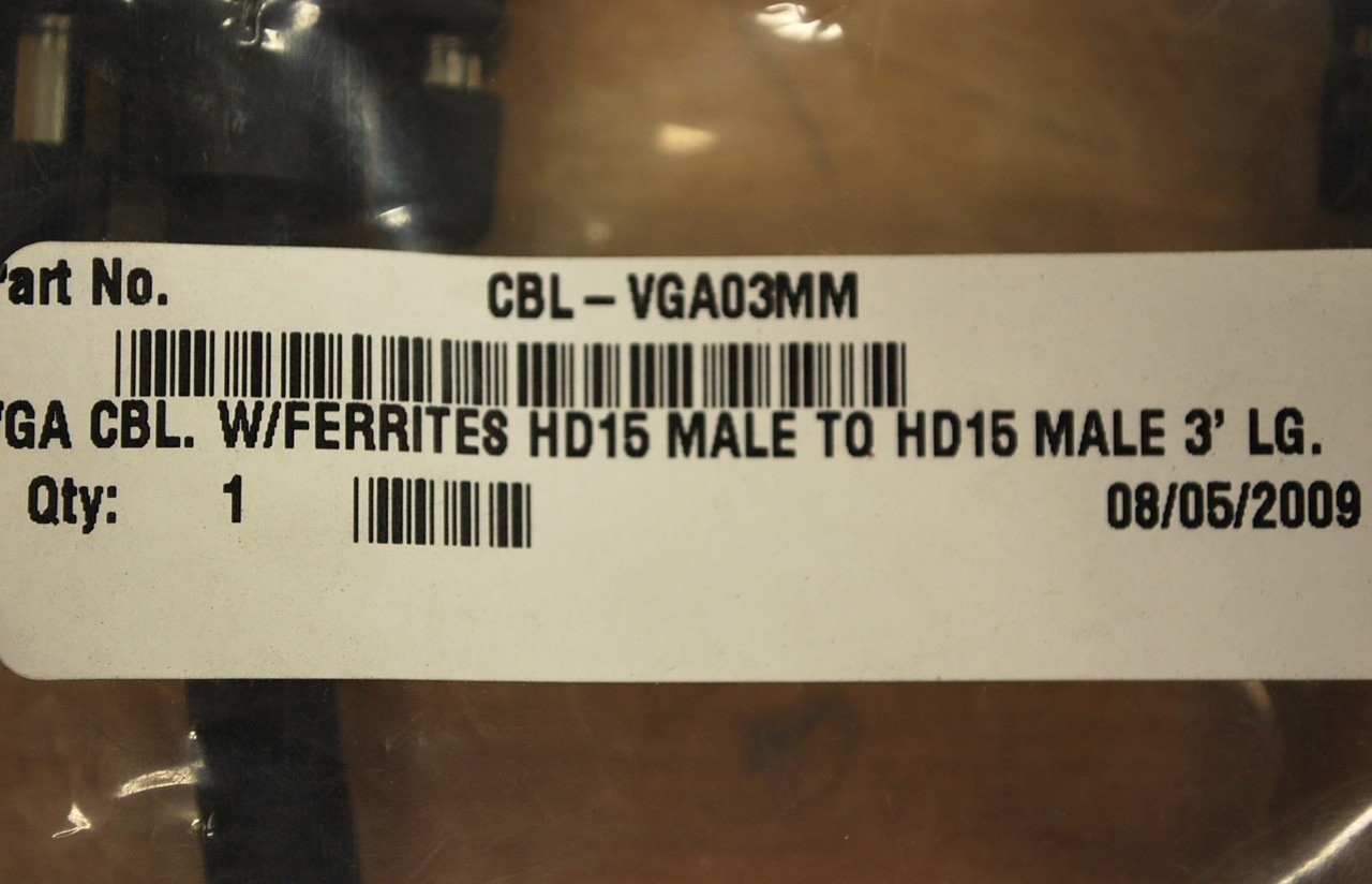 CBL-VGA03MM VGA Cable W/Ferrites HD15Male to HD15Male 3Ft Long - NEW