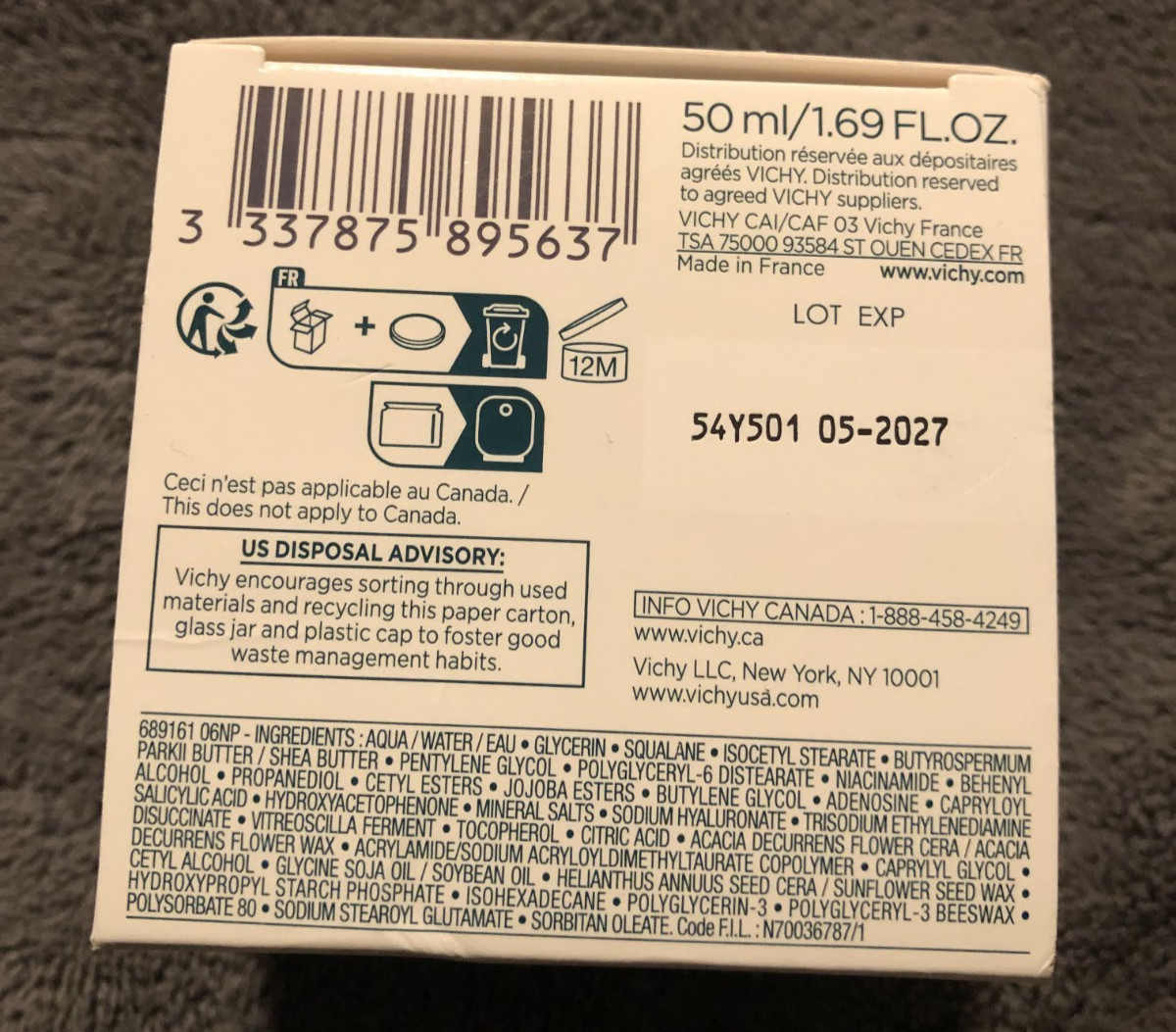New Vichy Mineral 89 100H Moisture Boosting Cream 1.69oz Dry Skin Hyaluronic