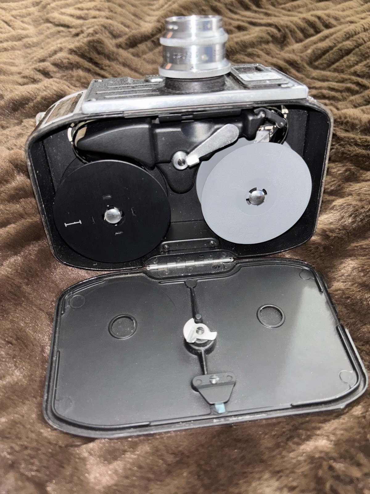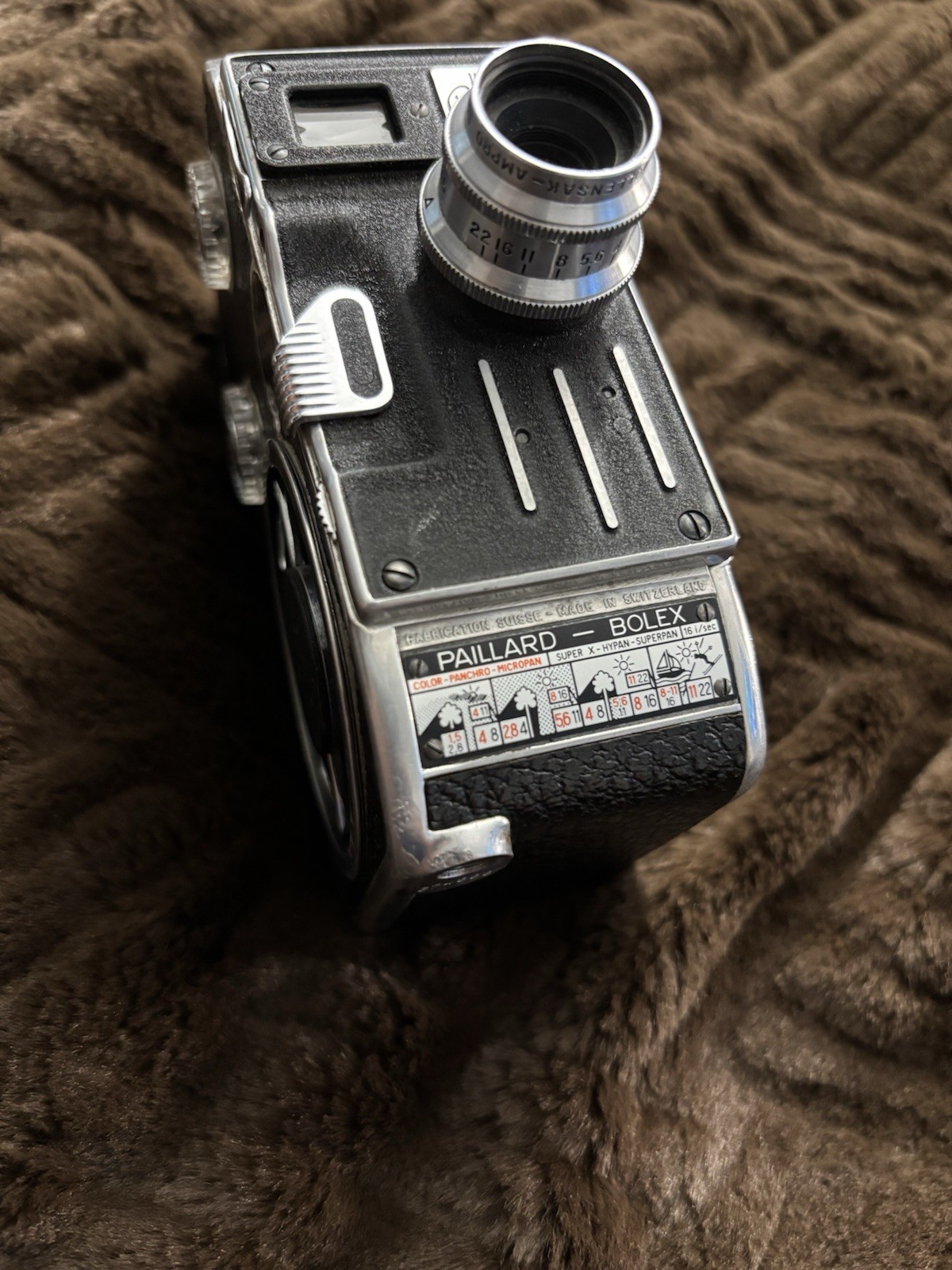 Особенности: 10-30mm zoom lens, Variable speed, 165 degree disc shutter, Highly polished aluminium body covered in genuine leather, Optical viewfinder, Governor controlled constant speed spring motor mechanism, Bolex compartment case, Removable, solid metal 'Declic' pistol grip handle